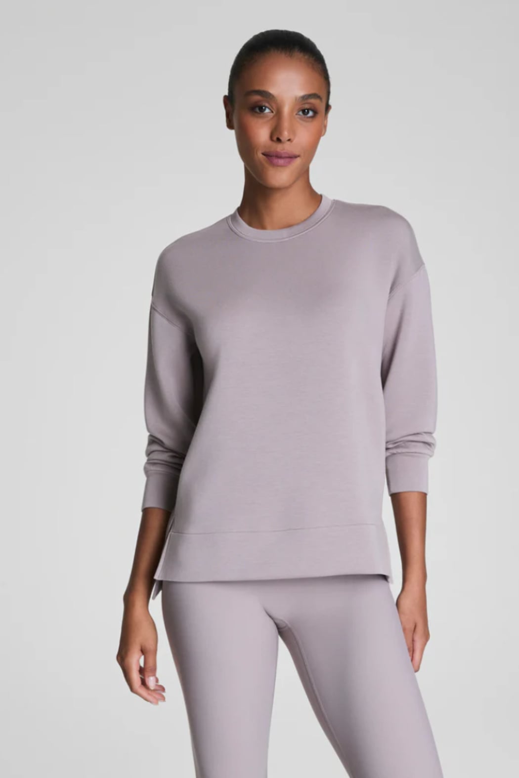 Made with our ultra-drapey spacer fabric that's breathable, light-as-air, and oh-so-soft. This versatile long layer features a relaxed fit with 4-way stretch for total comfort, a classic crewneck, and hits below the hip for extra booty coverage. Sleek, stylish, and comfortable, this throw-on-and-go top will take you anywhere and everywhere.