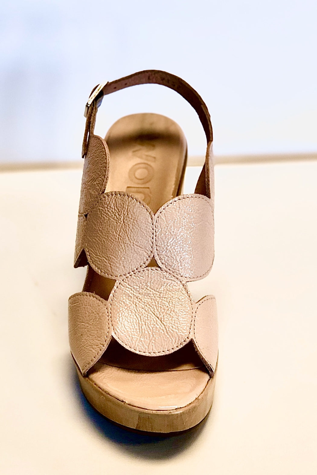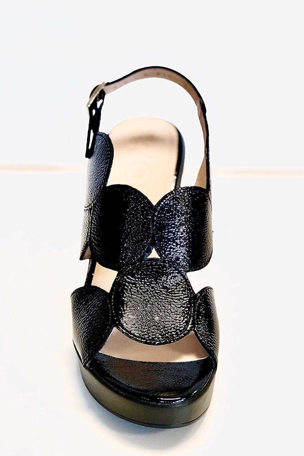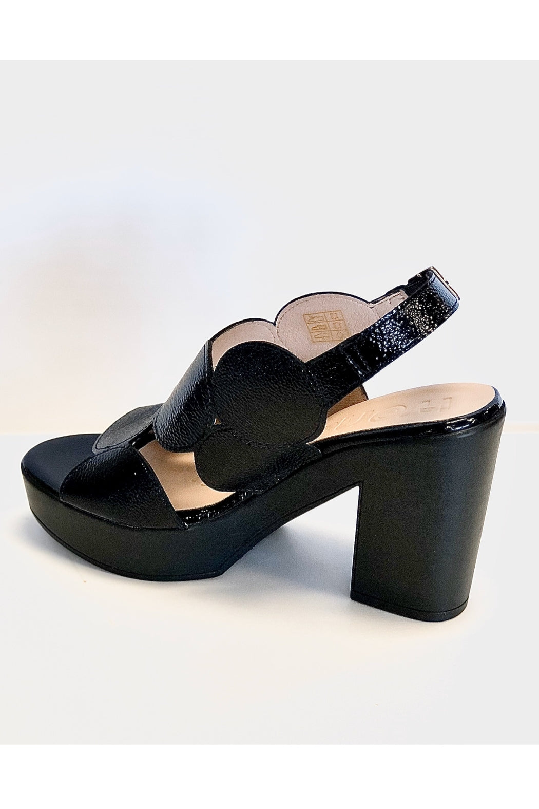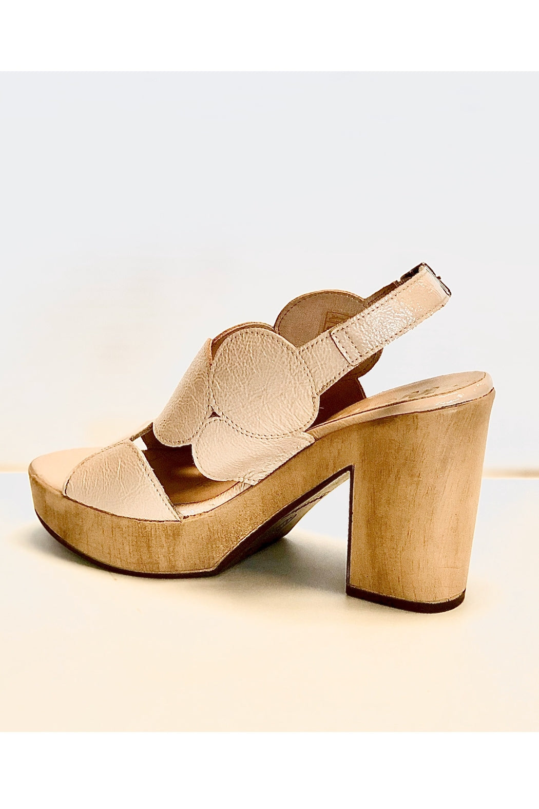 Heel style: block/chunky Toe style: open toe 4" heel with 1" platform (size 39) Adjustable slingback strap with buckle closure Leather upper and lining/synthetic sole