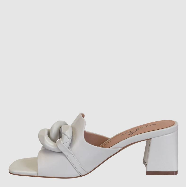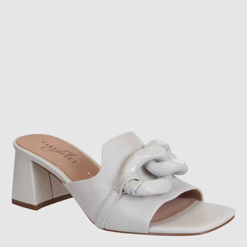The perfect statement kitten heel for day to night, Coterie raises the bar of elegance with a statement chain ornament and modern block heel. Wear from office to evening wear or to your next occasion. This soft white hue is the perfect way to freshen up everyday looks in your wardrobe.