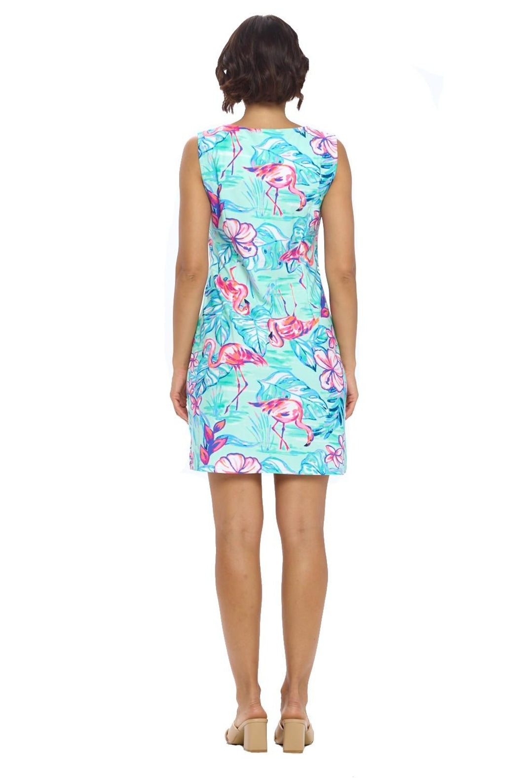 Sleeveless Flamingo Print Dress, Split Neck And UPF+50