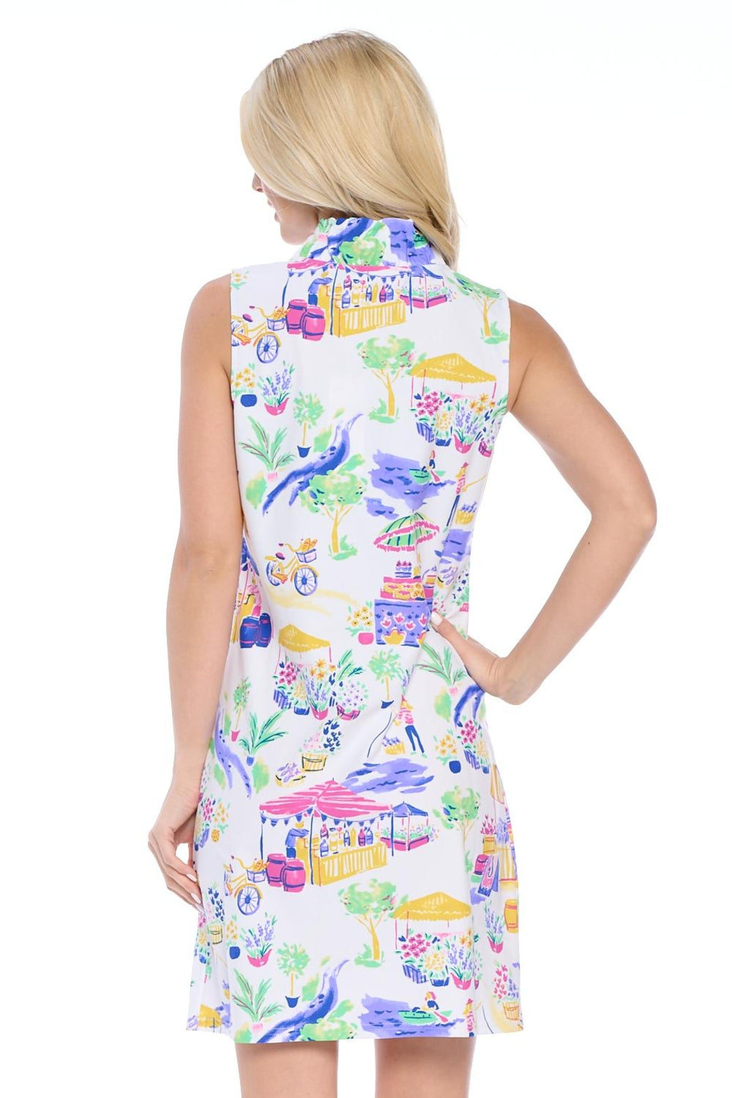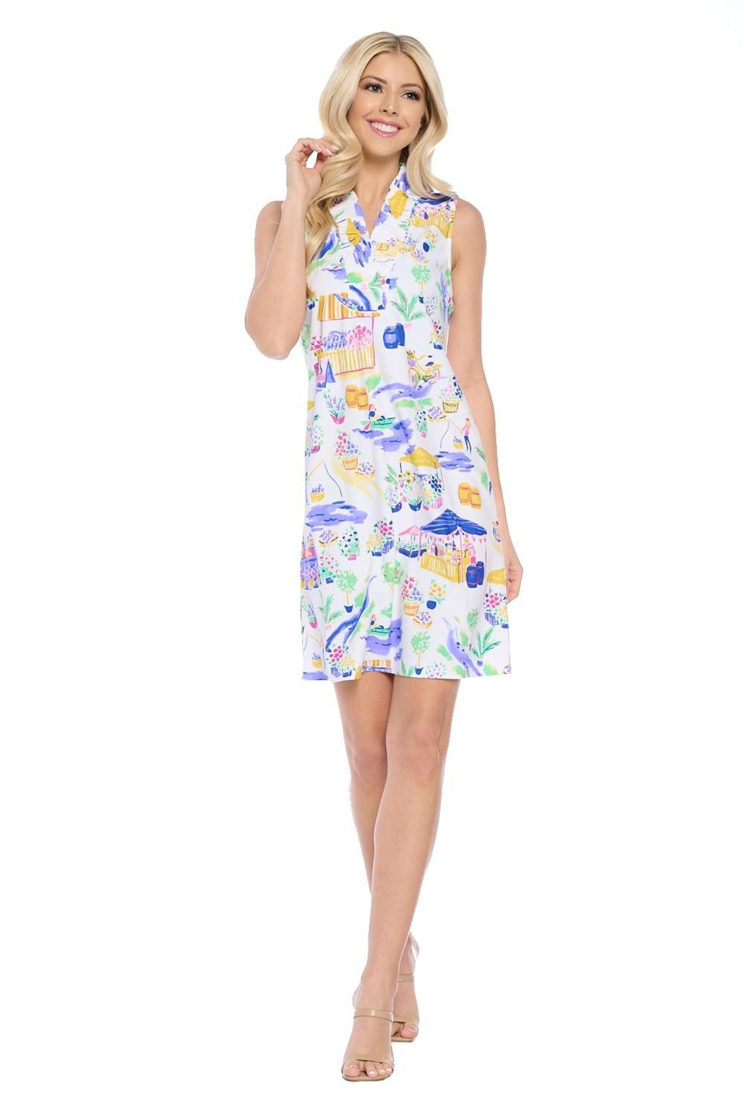 Ruffle Neckline Shift Dress Model in Size Small Soft and Stretchy Fabric