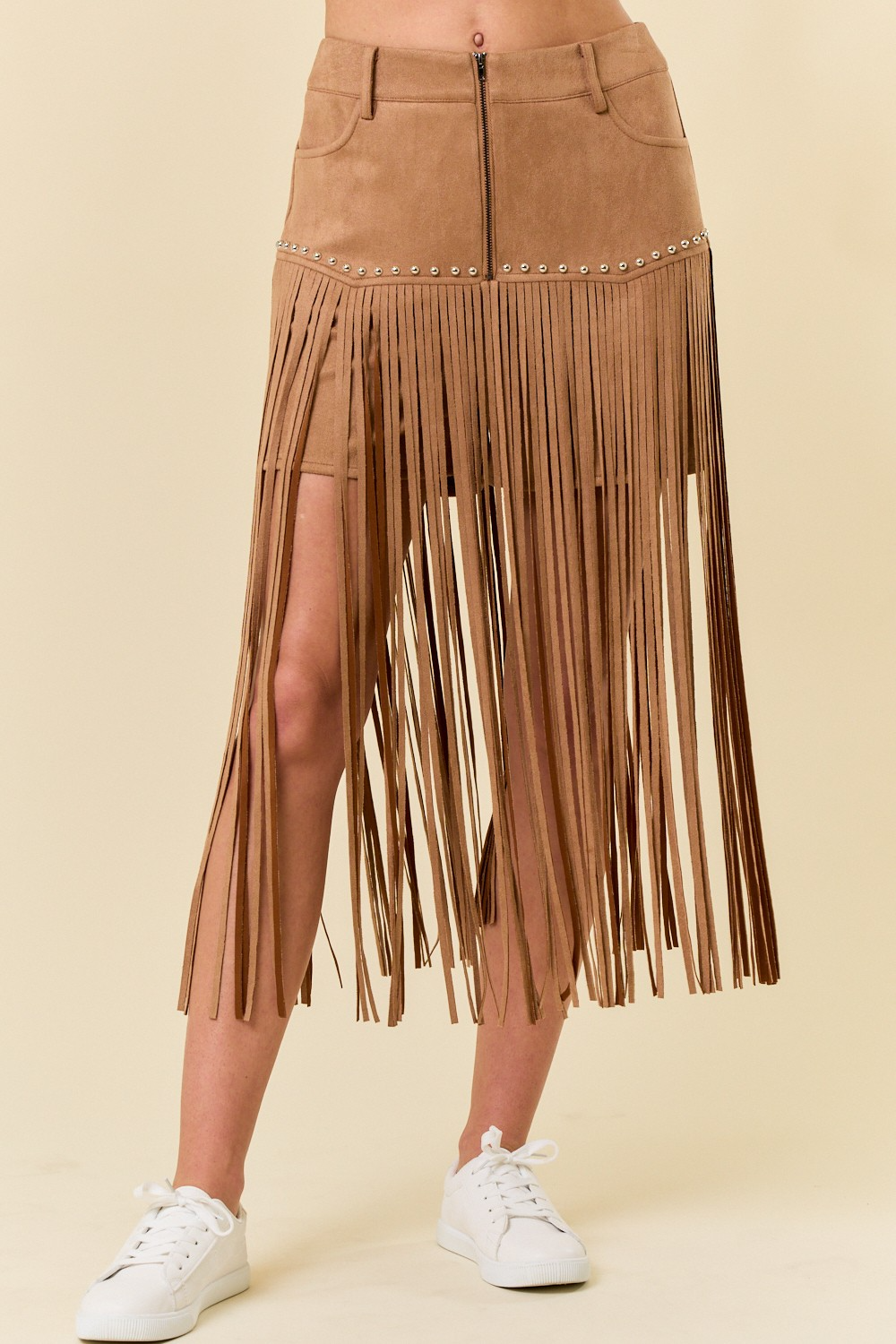 Step into effortless boho-chic style with the Desert Dancer Fringe Shorts. Crafted from soft, high-quality suede, these statement shorts feature long, flowing fringe that moves with every step. Perfect for festivals, nights out, or adding a bold western touch to your wardrobe, they offer a flattering high-waisted fit and a soft, supple feel. Pair them with a crop top and boots for a free-spirited, head-turning look.