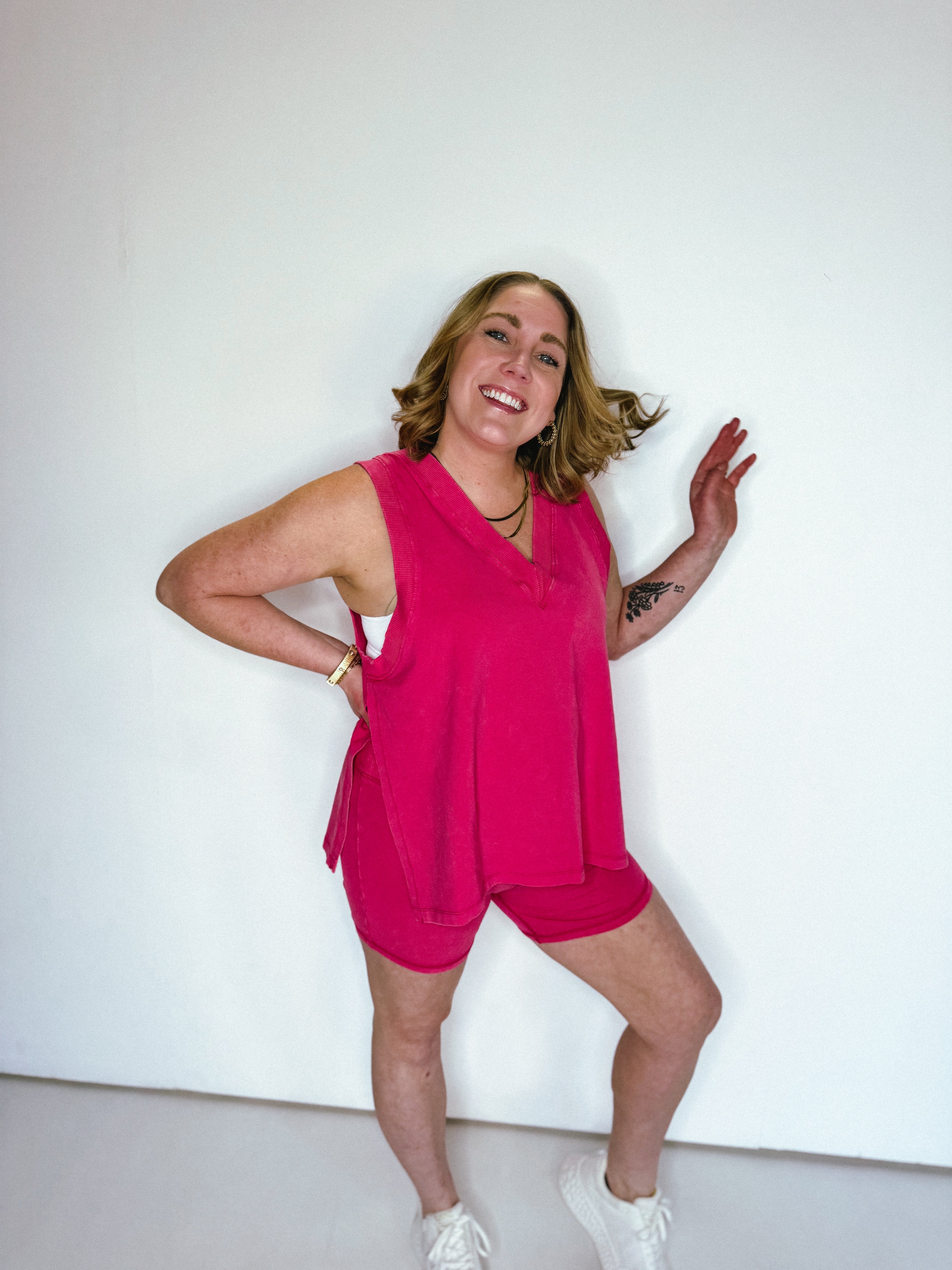 Hit the beach in style with our Fuchsia Ribbed Micro Shorts! These cozy micro shorts feature a ribbed waistband that folds over for a comfortable and flattering fit. Perfect for lounging or a day out in the sun. Don't miss out on this must-have addition to your summer wardrobe.