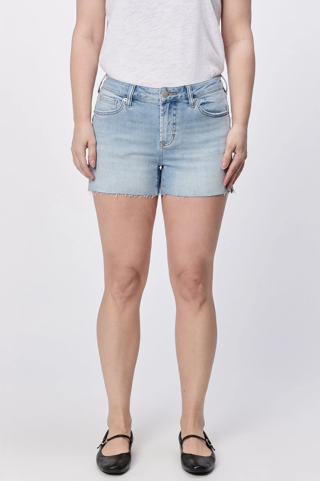 The perfect blend of comfort and style with our Gigi denim shorts, featuring a mid-low rise and raw cut hem, made from a premium 98% cotton and 2% spandex blend for a flattering fit and versatile outfit choice.