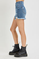 HIGH RISE FRONT DISTRESSED SHORTS