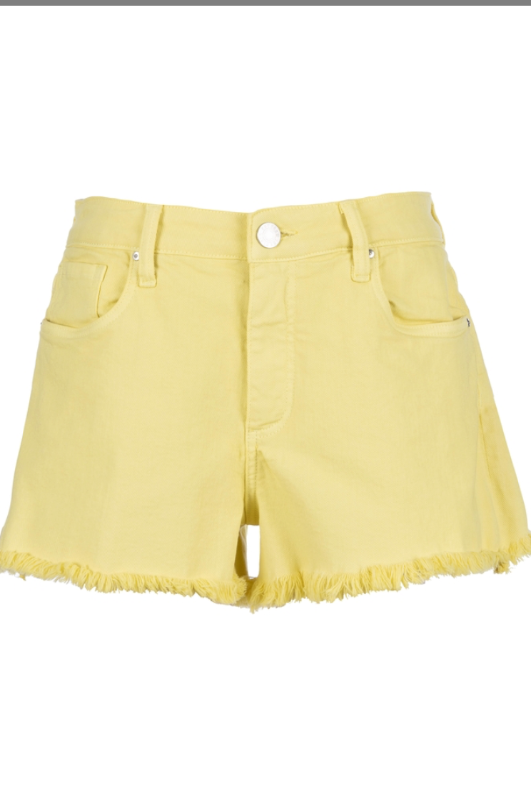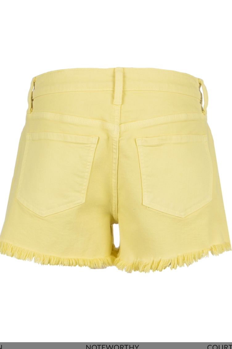 Feathery frayed hems punctuate these faded shorts cut from low-stretch denim with a high waist and light distressing.