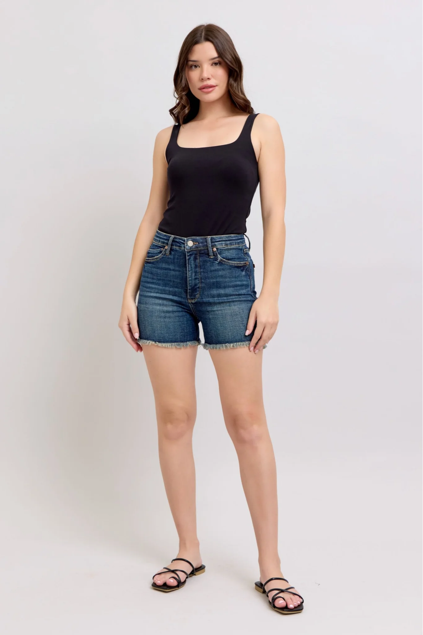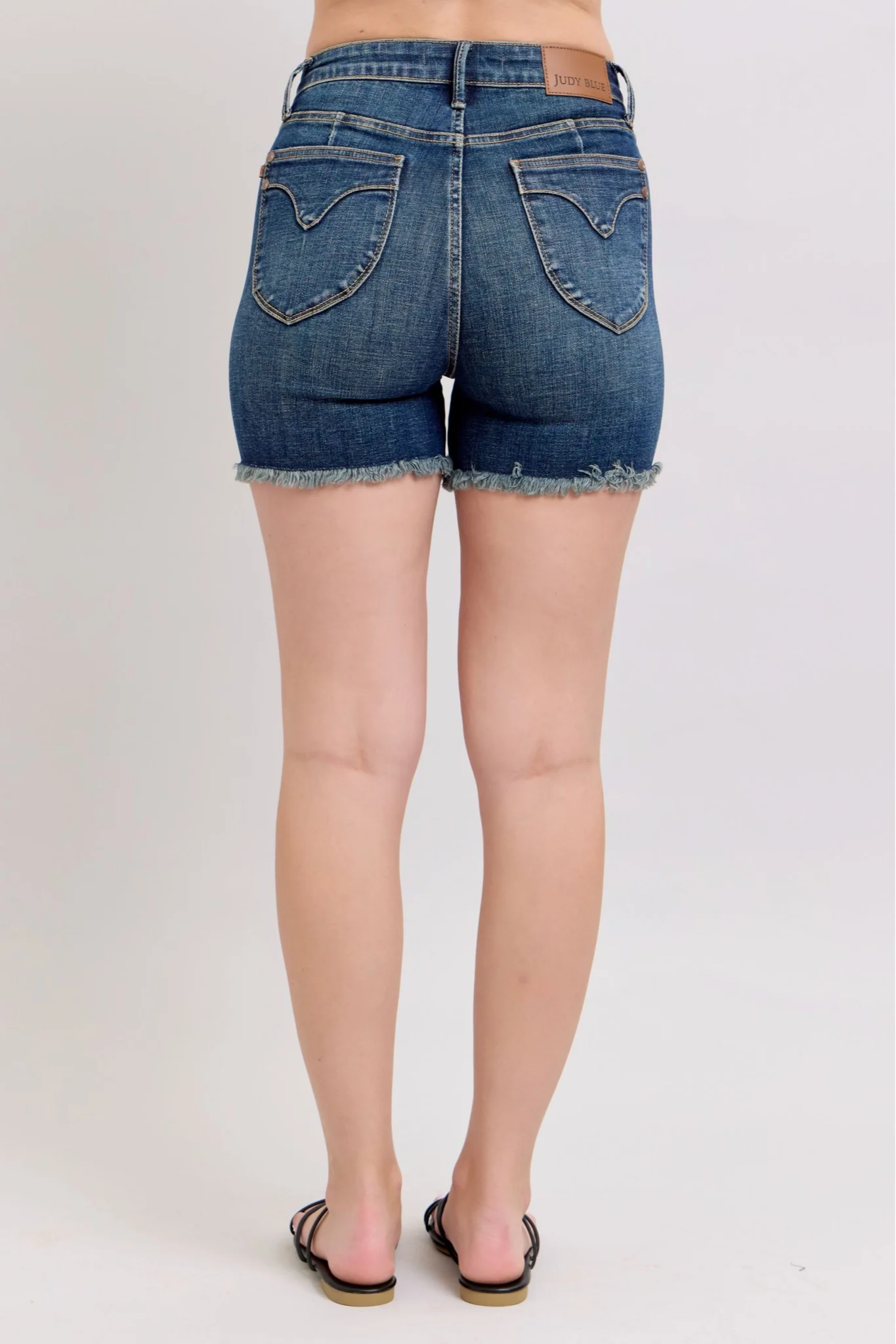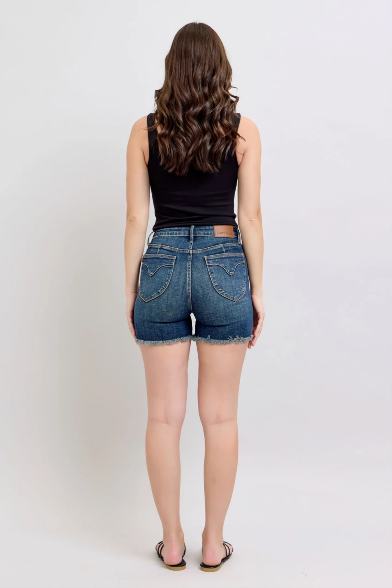 Judy Blue HW Tummy Control Fray Hem & Shield Back Pocket Shorts