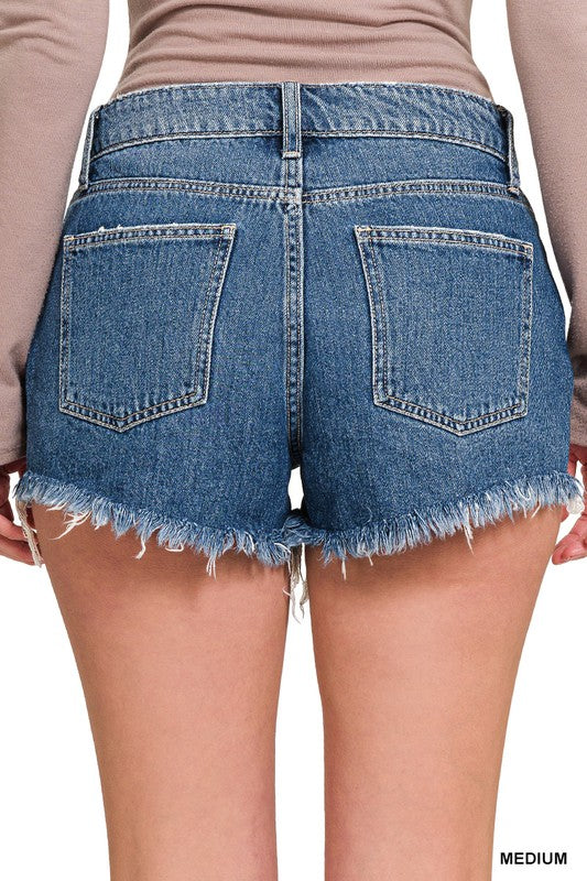 Kasey Low Rise Distressed Jean Shorts by Zenana