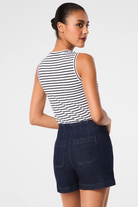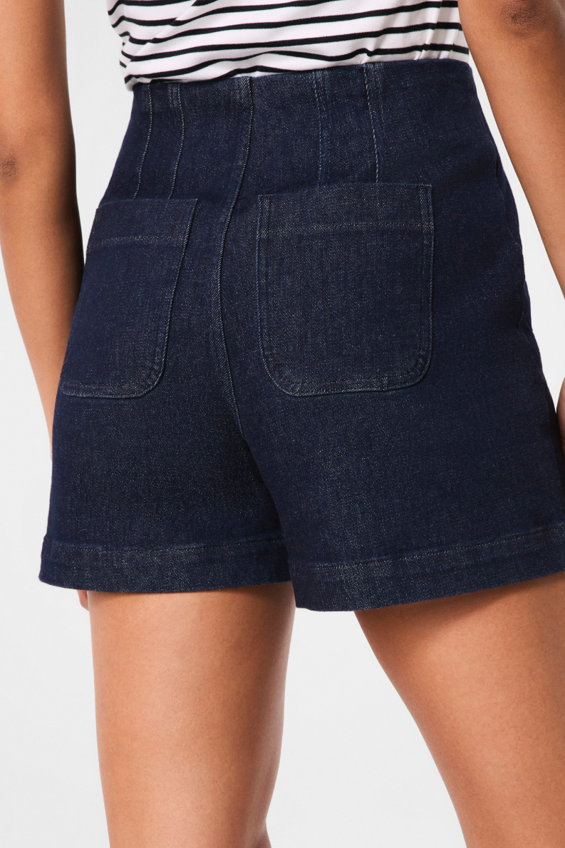 Denim with SPANX® Technology: With built-in TummyTamer Tech™, these jean shorts combine premium denim with the feel of SPANX