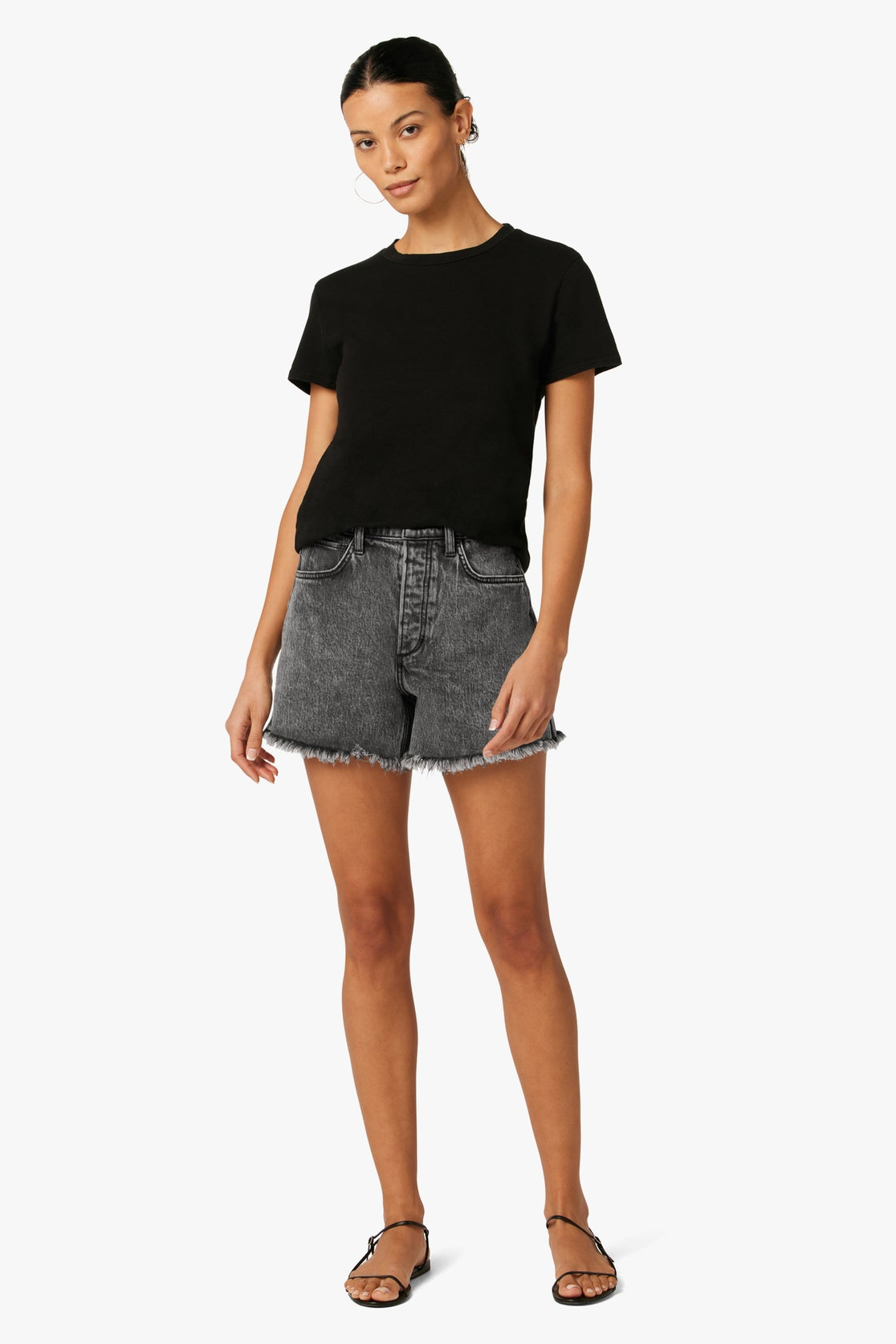 With a high rise and relaxed fit, the Alex is perfectly distressed, delivering a vintage aesthetic. The faded dark-grey shade in 'Felt Cute' has an acid wash and side vents that can be worn day or night. With denim that perfectly hugs your waist and prioritizes comfort, the Alex shorts will be a staple for seasons to come.
