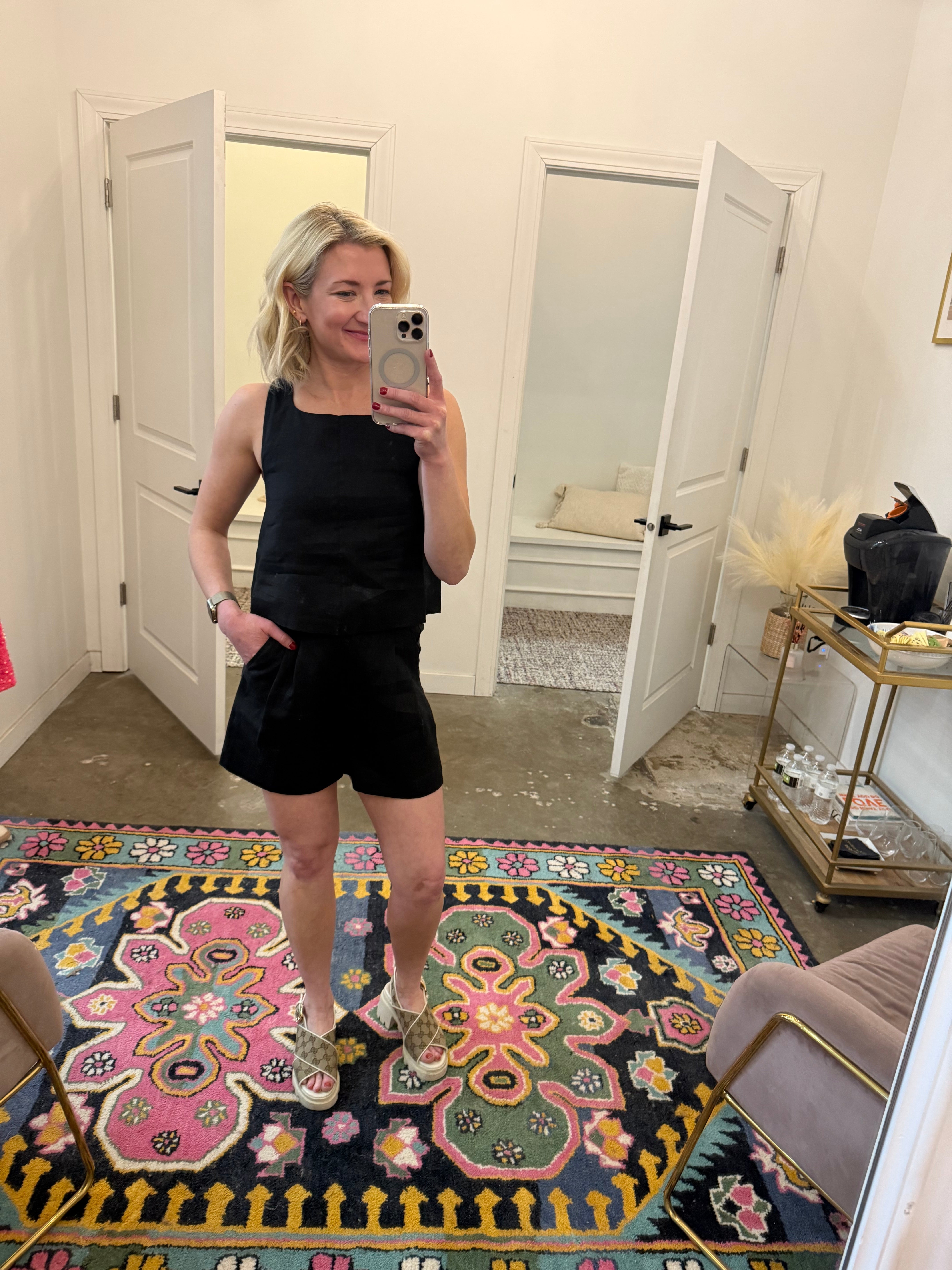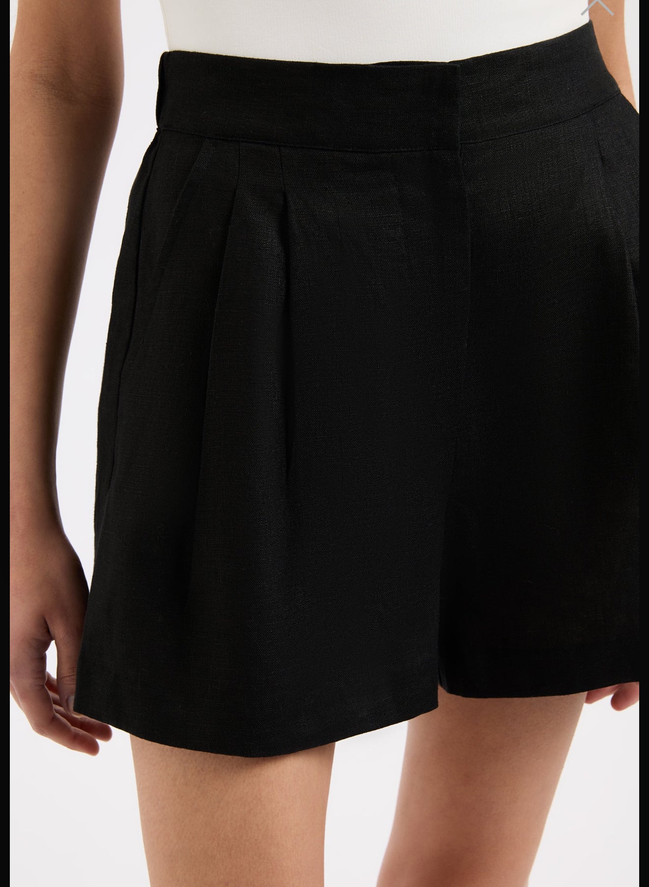The Thilda Linen Short in white is made 100% linen which has been washed for a soft, breathable hand feel. The silhouette is a classic tailored shape worn high on the waist and relaxed through hip and leg. Features include a functioning fly front, elasticated on the back waistband and front pleats.