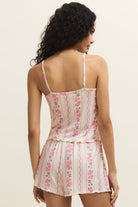 A lightweight floral cami cut in a soft knit with ruched center, narrow spaghetti straps and a lettuce hem for a delicate finish. The Vanity Boudoir Cami reads romantic and easy — perfect for lounging or layered under a cardigan. This piece is offered by Z Supply and pairs feminine print with a breathable, relaxed silhouette.