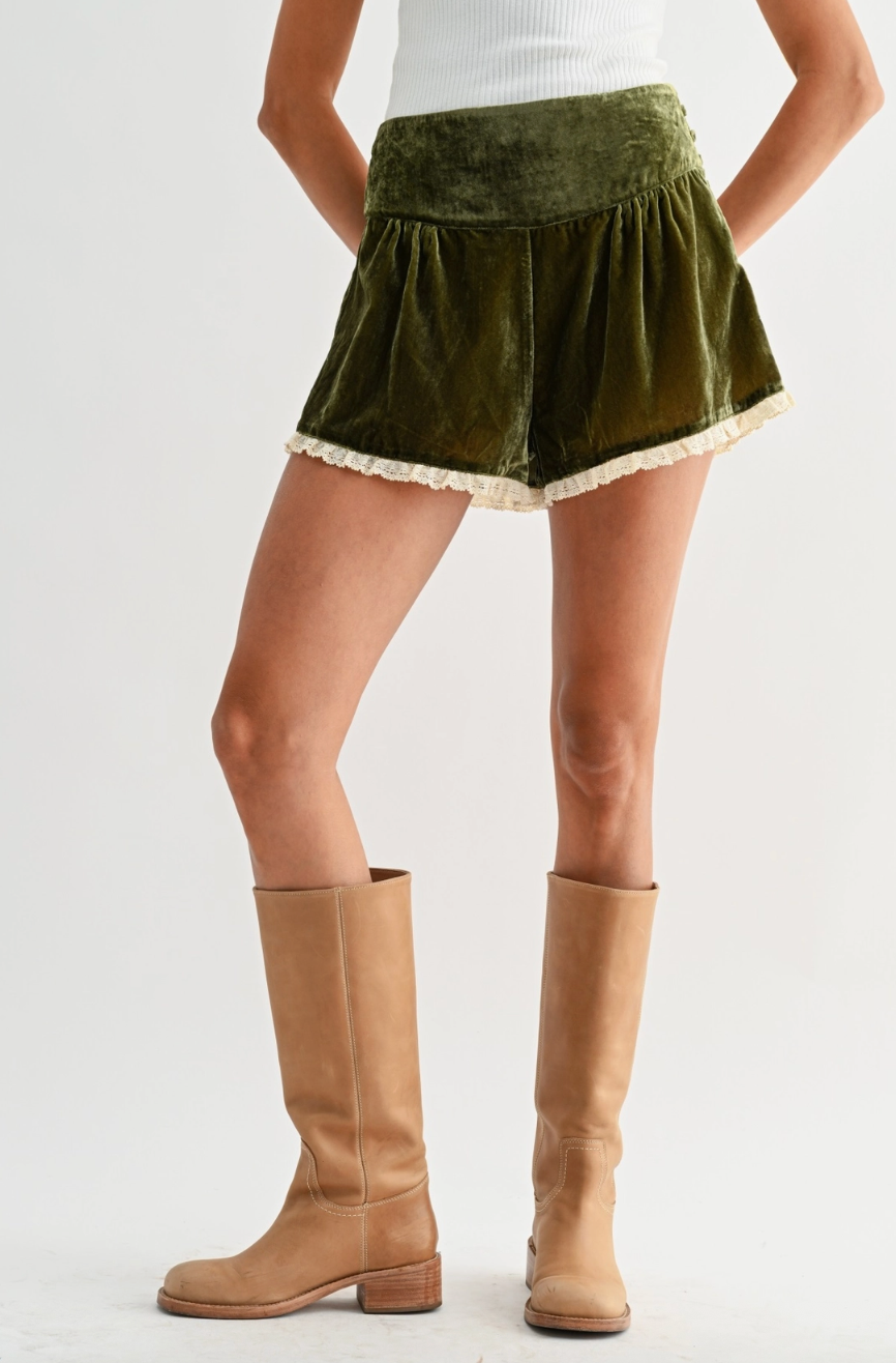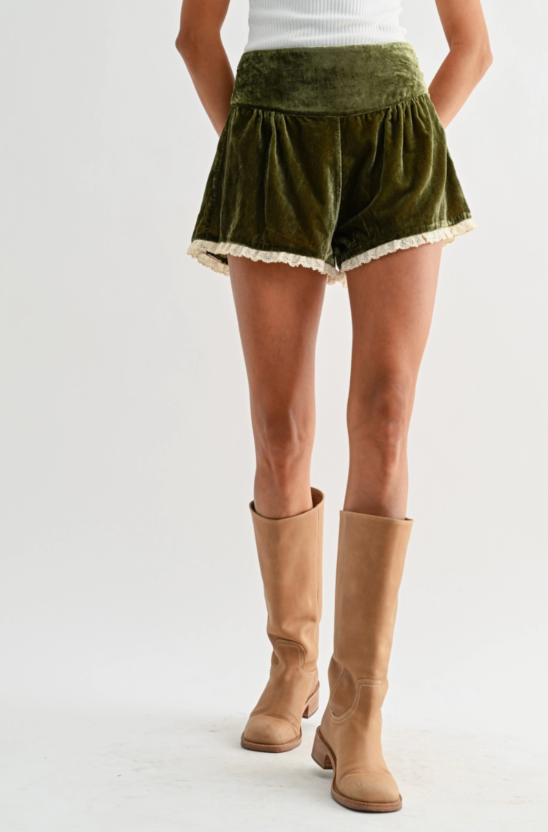 Velvet Lace Trim Shorts