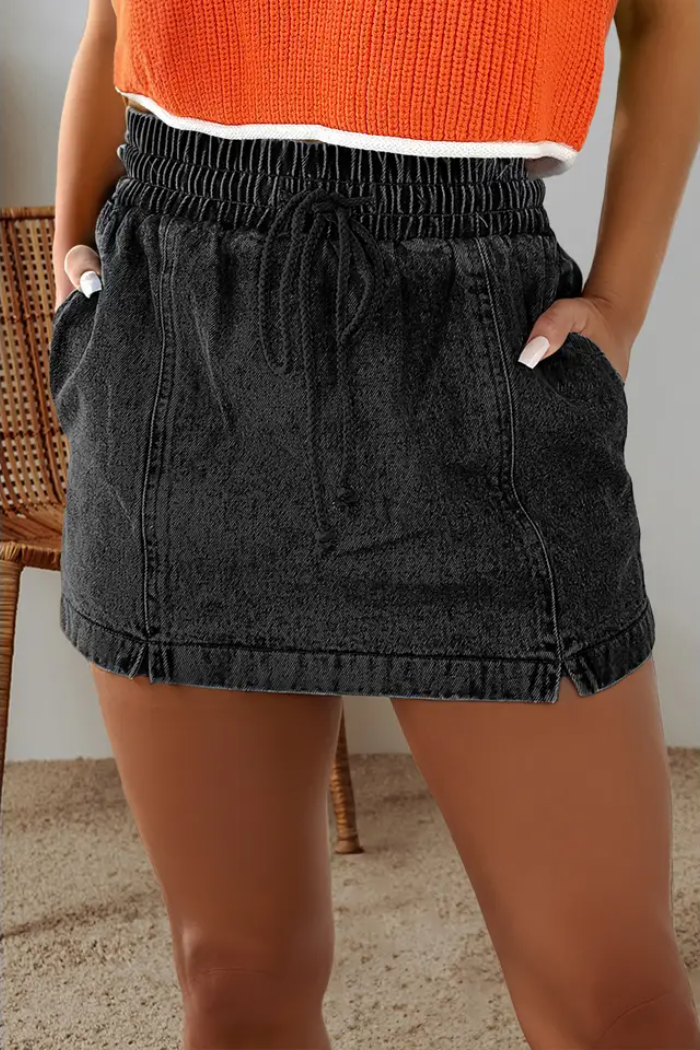 š Embrace the illusion of a mini skirt with the front view of these denim shorts, offering a unique and stylish twist to your casual wardrobe.