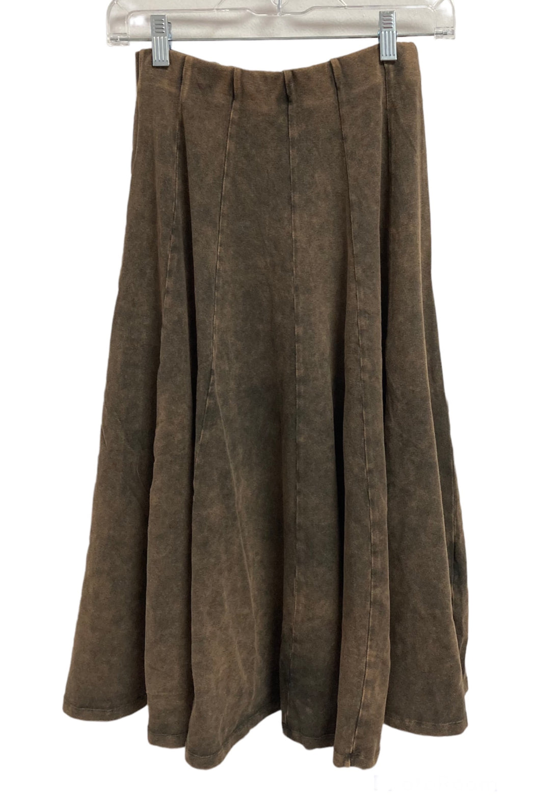 27" mineral wash panel skirt. Pull on. Soft cotton with nice stretch.