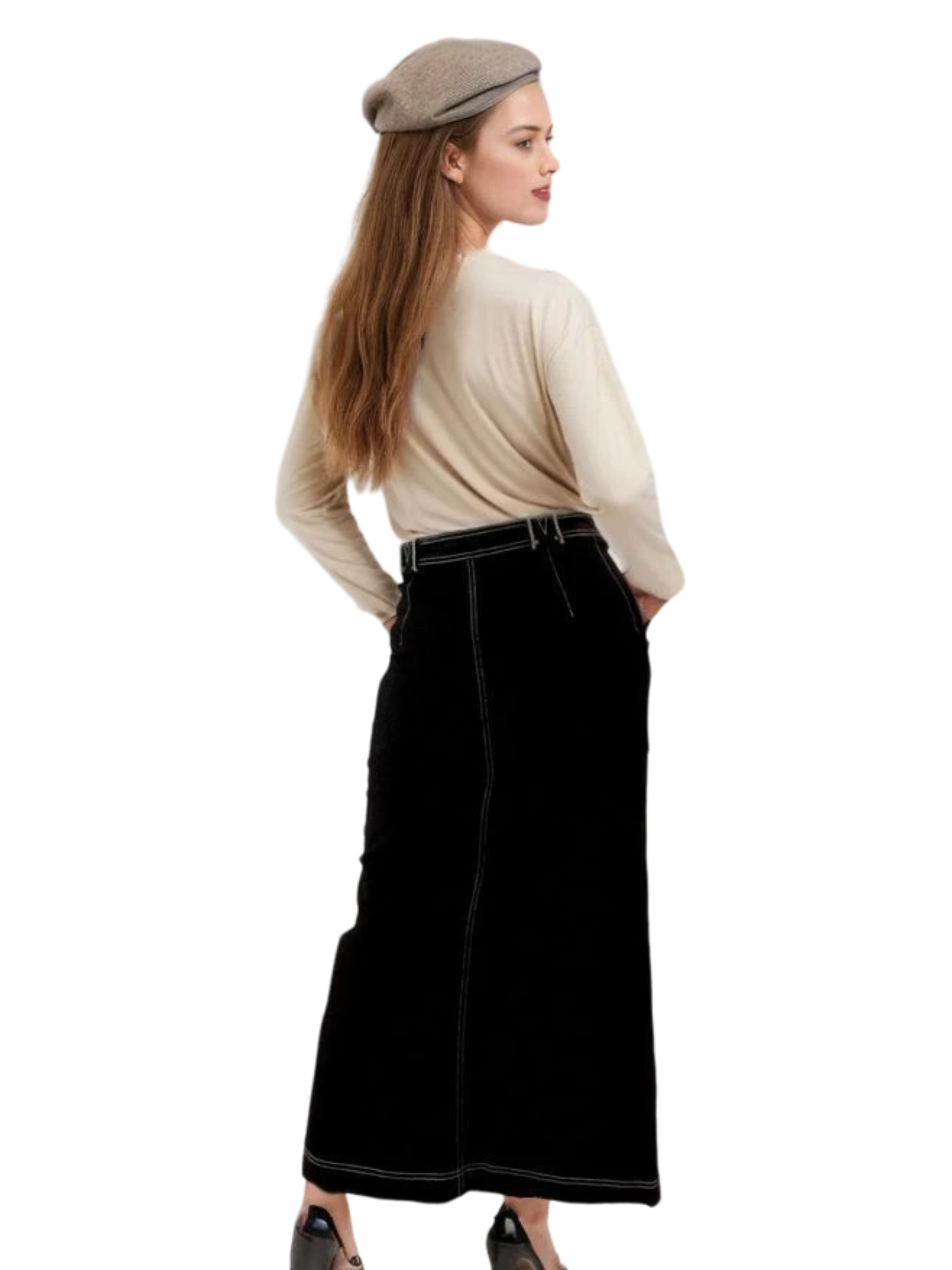 Look - Effortlessly chic, the Pashmina Seamed Denim Skirt features a flattering silhouette with expertly placed seams that enhance your natural curves. Crafted from premium denim, it offers both comfort and style, perfect for any occasion. The versatile design pairs beautifully with both casual and dressy tops, making it a must-have staple in your wardrobe.