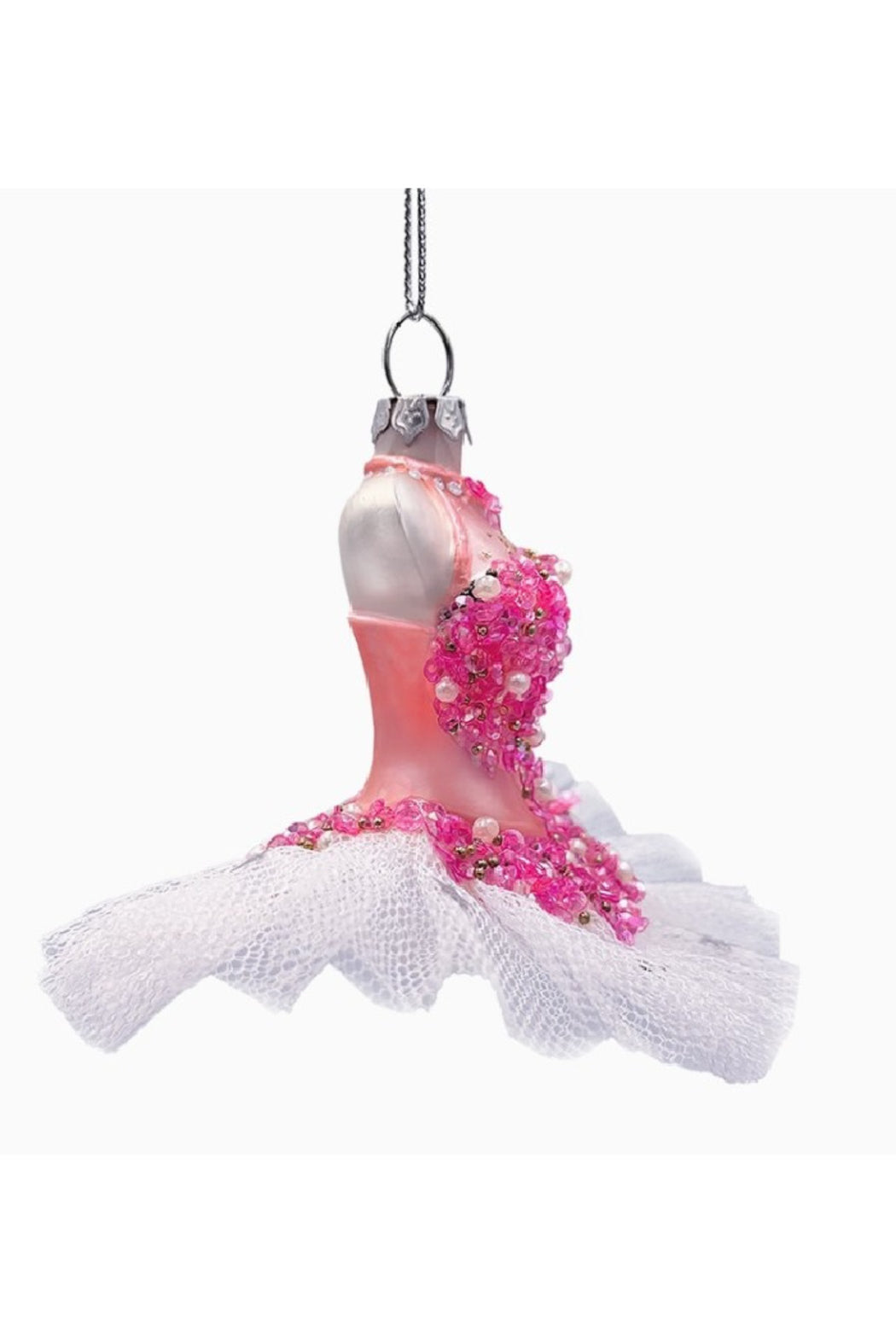 This exquisite handcrafted ballerina dress ornament features a delicate pink beaded bodice adorned with shimmering pearls and gold accents, while the soft tulle skirt adds an ethereal touch with silver star embellishments. Made from high-quality glass, it’s a timeless piece perfect for ballet lovers, dancers, or anyone who appreciates the artistry of ballet. Whether hanging on your holiday tree or given as a thoughtful gift, this elegant ornament is sure to become a cherished keepsake.