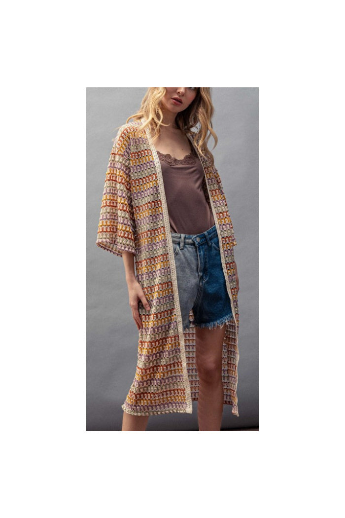 Geometric Crochet Kimono Sleeve Midi Cardigan