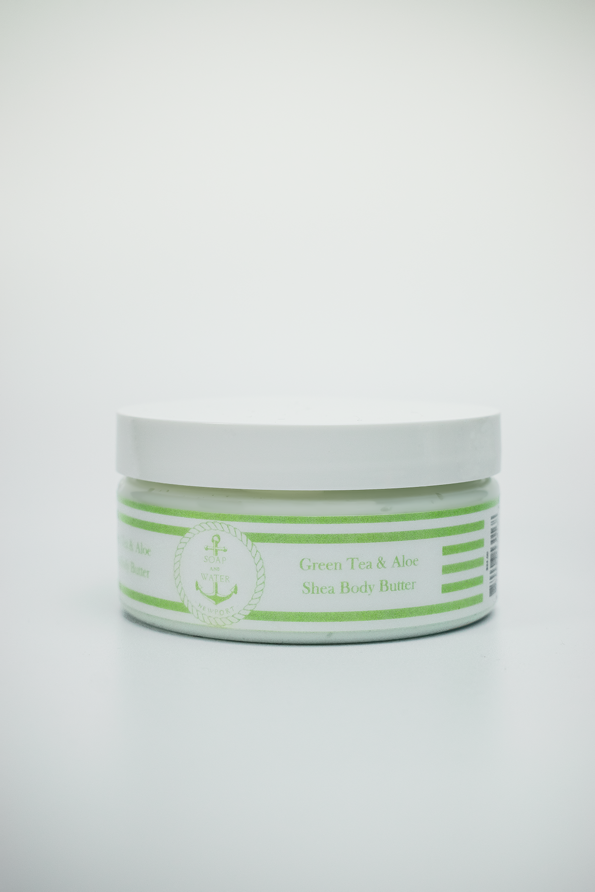 GREEN TEA & ALOE - Our Green Tea & Aloe fragrance is the quintessential blending of zesty, Japanese Matcha Green Tea, Manuka Honey and cool, soothing Aloe Vera. This blend of spa favorites is a match made in heaven! 8oz We use 30% Organic African Shea in our Shea Body Butters. Most commercial brands only have 4-8% (and they are seldom organic). To top it off, we round out our recipe with Hempseed Oil, Grapeseed Oil, Vitamins and Skin Loving Minerals. What does Hempseed Oil add to our Shea? Hempseed Oil is a Deep Hydrator, increasing elasticity of the skin, stimulating new cell production and preventing natural moisture loss. Grapeseed Oil makes the Shea perfect for those with oily skin, acting as an anti-inflammatory for those with acne who still want to moisturize. Grapeseed Oil also helps tighten skin, helps lighten dark circles under the eyes and helps heal minor abrasions.
