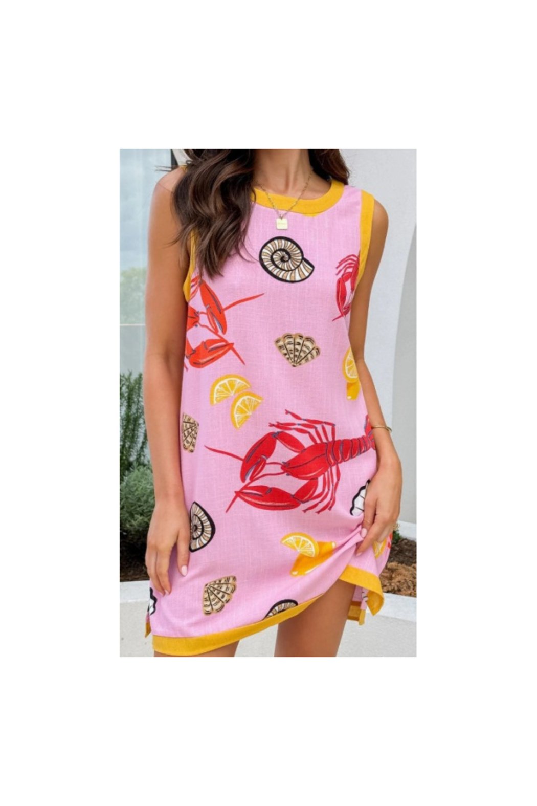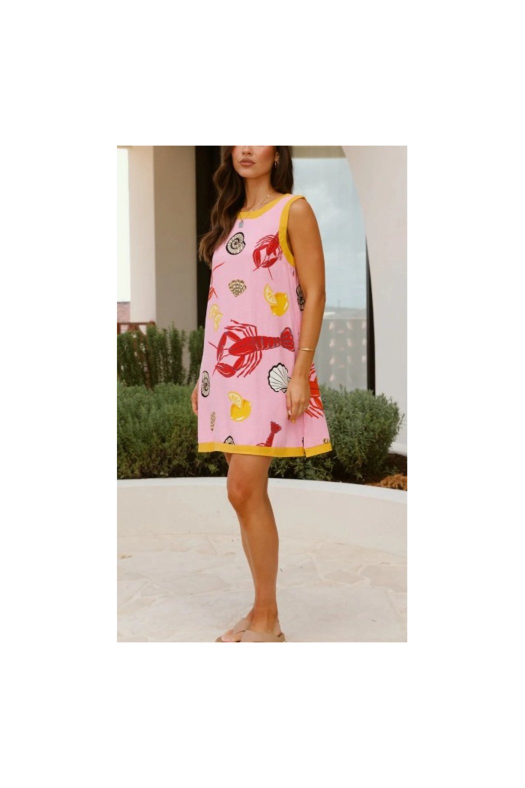 Savor the Summer in Style 🦞🍋 Turn heads at your next sunny outing with our Lobster Print Sleeveless Dress, featuring a playful mix of seafood and lemon prints that capture the spirit of summer. With its breezy silhouette and eye-catching contrast trim, this dress is made for seaside strolls, backyard brunches, and everything in between. Crafted from lightweight fabric, it keeps you cool and comfortable while serving bold, fresh style. Pair it with sandals and a straw tote for a look that’s equal parts fun and effortlessly chic. Details You’ll Love: Whimsical lobster, seafood, and lemon prints Lightweight, breathable fabric perfect for warm weather Sleeveless design with an easy, flowy fit Contrast trim for a polished finish Ideal for summer vacations, picnics, and casual gatherings Bring the coastal vibes wherever you go. 100% linen