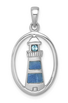 Illuminate your style with our Sterling Silver Rhodium-Plated Oval Adventurine and CZ Lighthouse Necklace – a stunning tribute to maritime charm and coastal allure. Meticulously crafted with precision, this necklace features an oval-shaped pendant adorned with adventurine and sparkling cubic zirconia, capturing the essence of a lighthouse against a scenic seascape. The polished sterling silver enhances the details of the pendant, creating a timeless and sophisticated piece. Rhodium plating ensures enduring durability and a brilliant shine, making this necklace a captivating addition to your jewelry collection. The aventurine, with its soft green hue reminiscent of the sea, adds a touch of natural beauty, while the cubic zirconia sparkles like the guiding light of a lighthouse. With an adjustable chain, this necklace offers versatility in styling, allowing you to customize the length to suit different necklines. Perfect for those who cherish the maritime spirit or seek a unique accessory with coastal inspiration, this necklace seamlessly transitions from casual to formal occasions. The secure clasp ensures easy wear, allowing you to showcase the Sterling Silver Rhodium-Plated Oval Adventurine and CZ Lighthouse Necklace with confidence and grace. Embrace the coastal allure with this enchanting necklace. Elevate your style with the sophistication of a lighthouse pendant adorned with adventurine and cubic zirconia, capturing the essence of coastal living. Whether a gift or a personal indulgence, this necklace is a delightful and eye-catching treasure for those who appreciate the beauty of the sea. INCLUDES 20" CHAIN