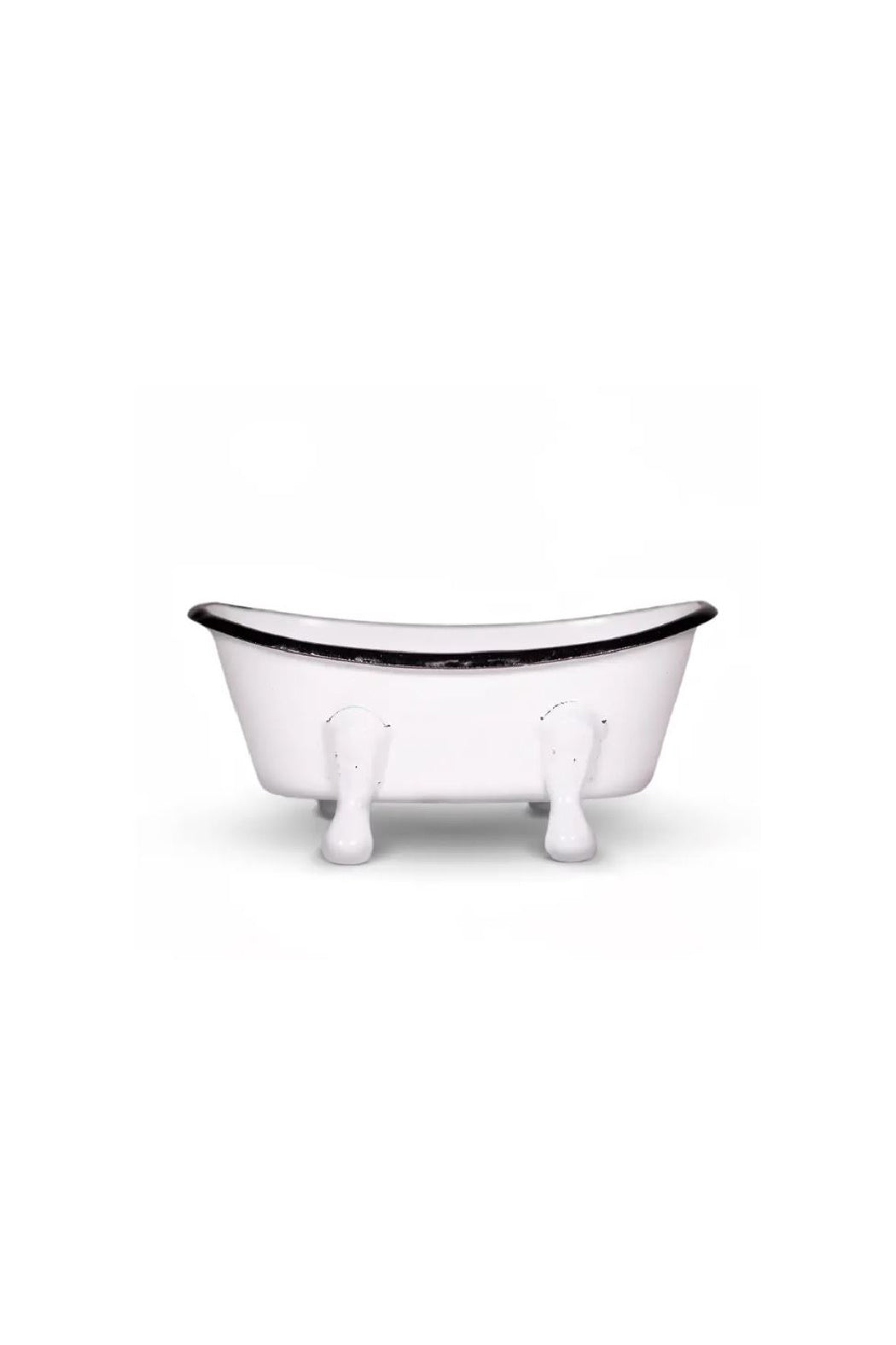 5.5"L Enameled Metal Bathtub Soap Dish, Distressed white.