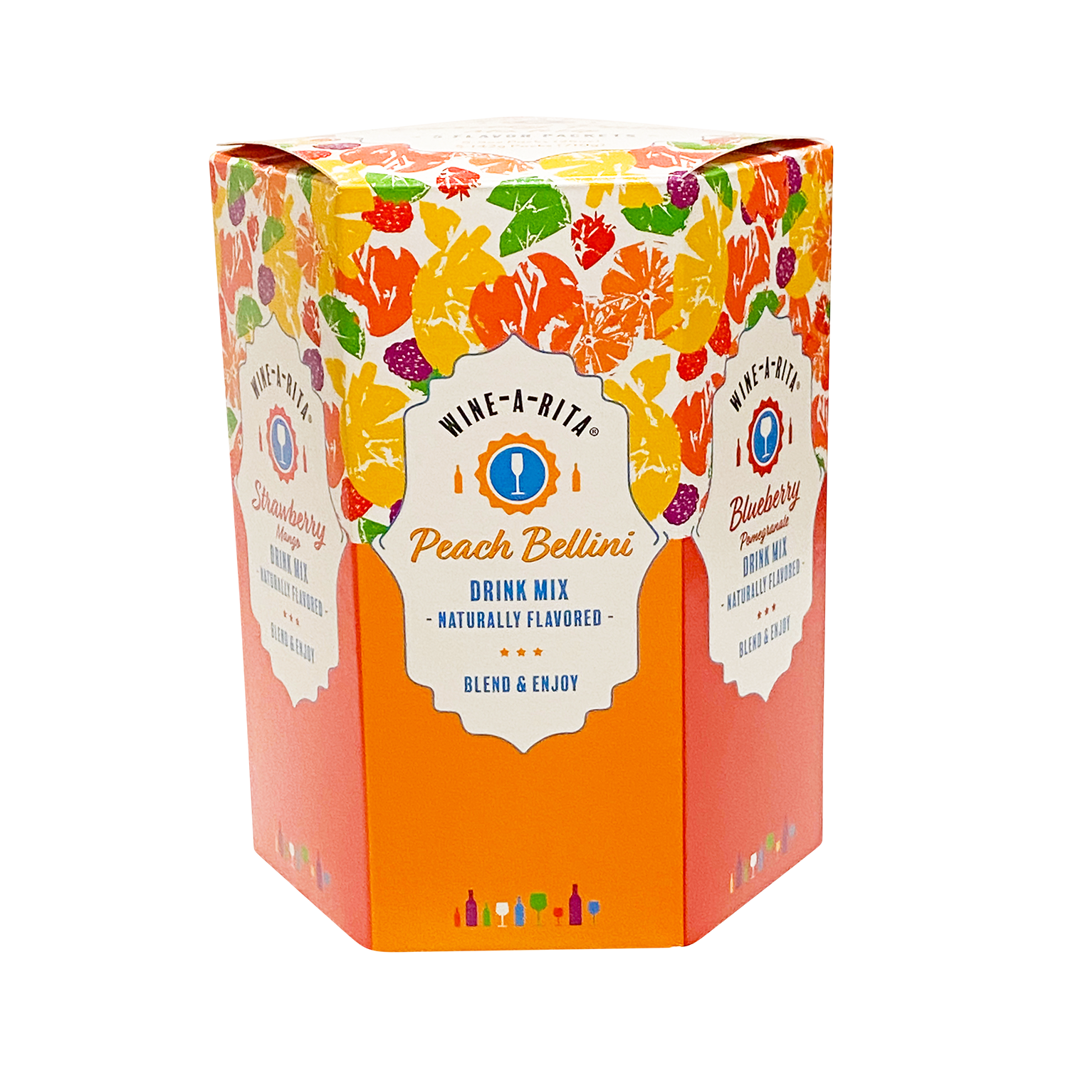 Variety Pack:  Includes 5oz peach bellini, senorita, blueberry pomegranate, strawberry mango, pina colada. This is the way to get your party started. Each 5oz. package makes 1 blender. Boxes ship flat to save on freight and damages Kosher.