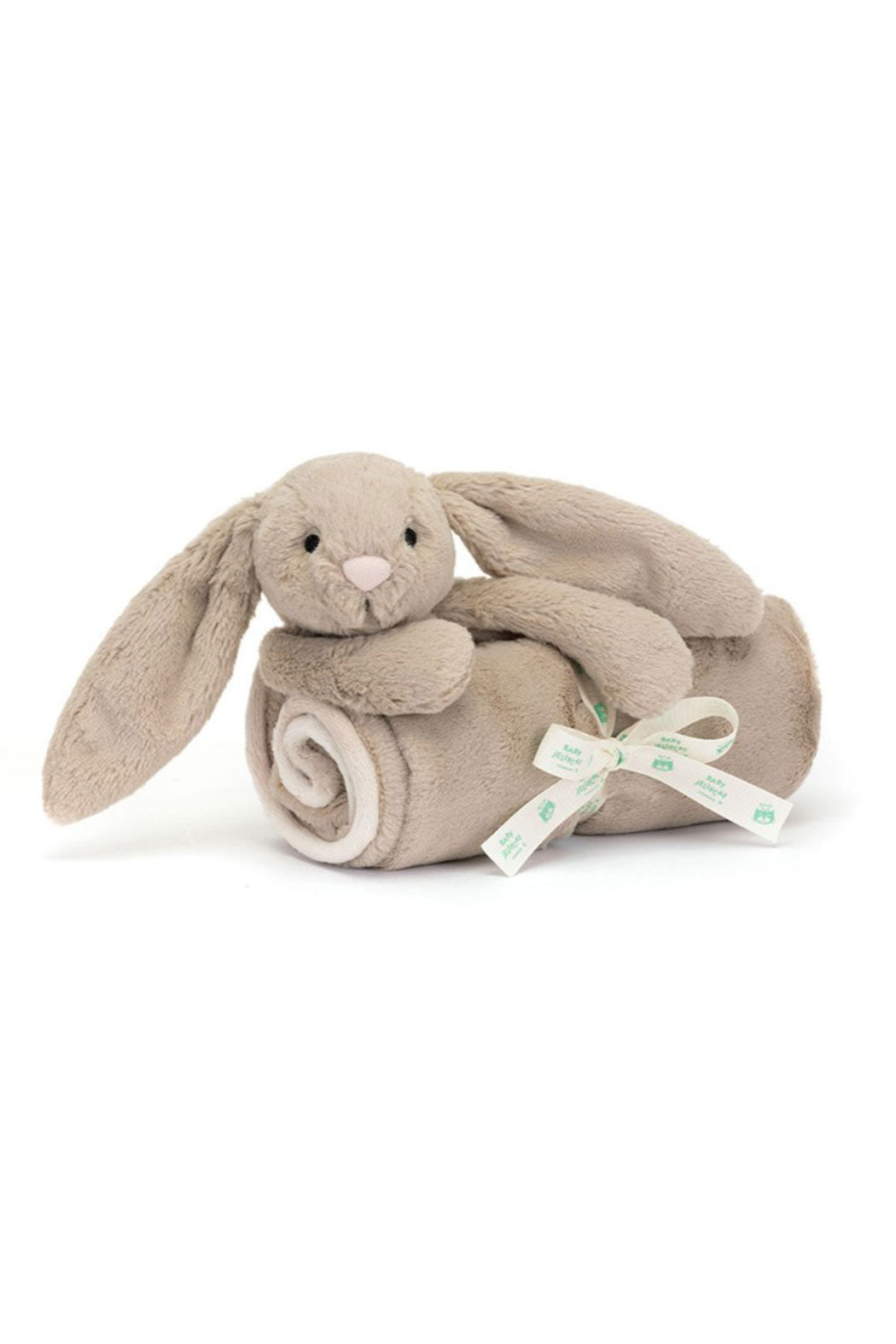 The Bashful Blush Bunny Blankie combines our most loved Bashful Bunny character’s long lop ears, pink suedette nose, embroidery eyes and soft squashy paws with a blankie made from the same cloud soft, peach pink colored fur in recycled fibers. Neatly rolled and tied with a Baby Jellycat grosgrain ribbon, this is an exquisite gift of endless comfort and timeless charm. Dimensions: 22in x 27.6in x 3.5in Embroidered Eye