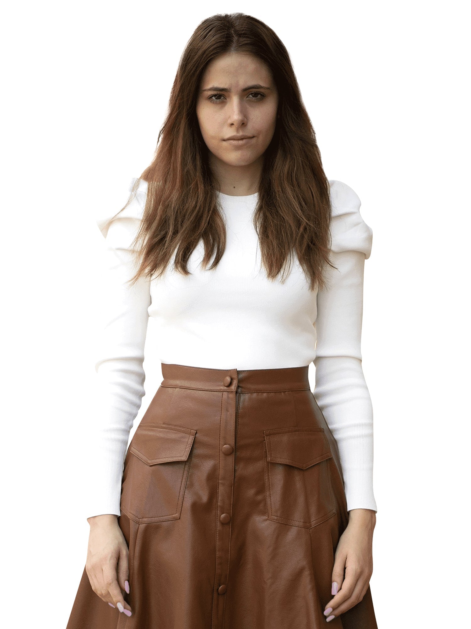 You have taken one look at this top and you already want to put it together with your favorite skirt and boots. A slimming, stretch fit and puff sleeves make this polished sweater a winning look every time.