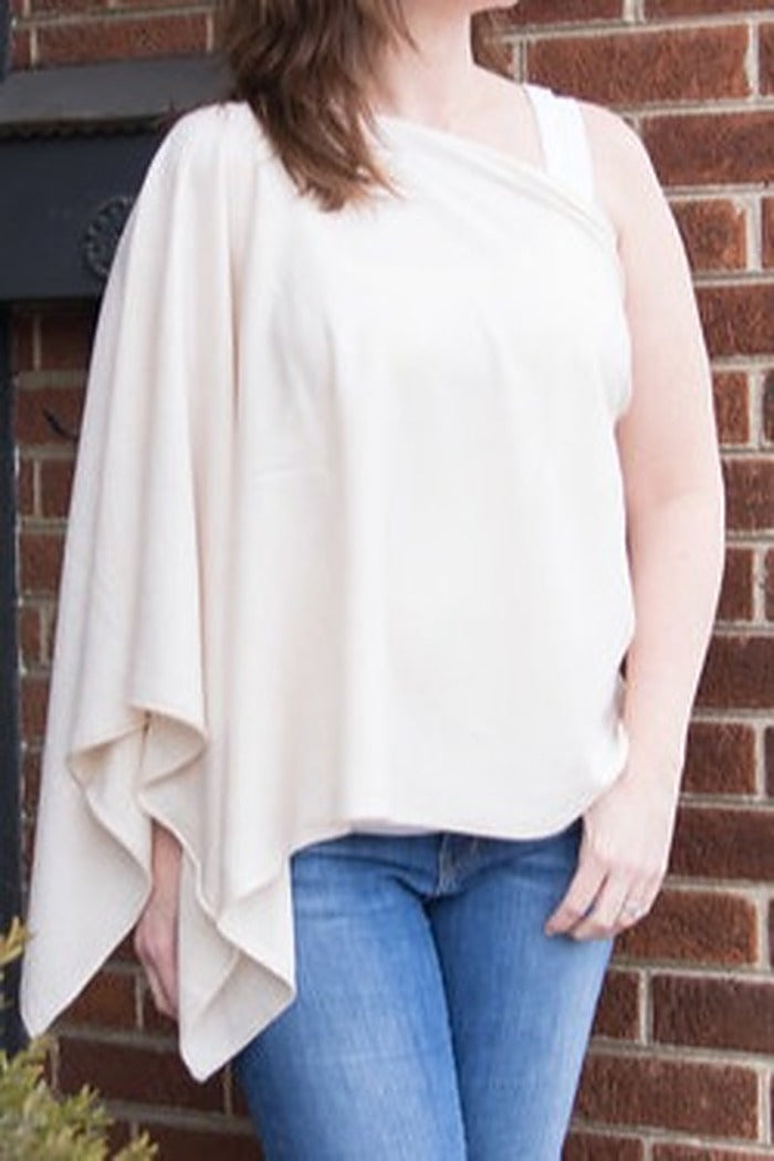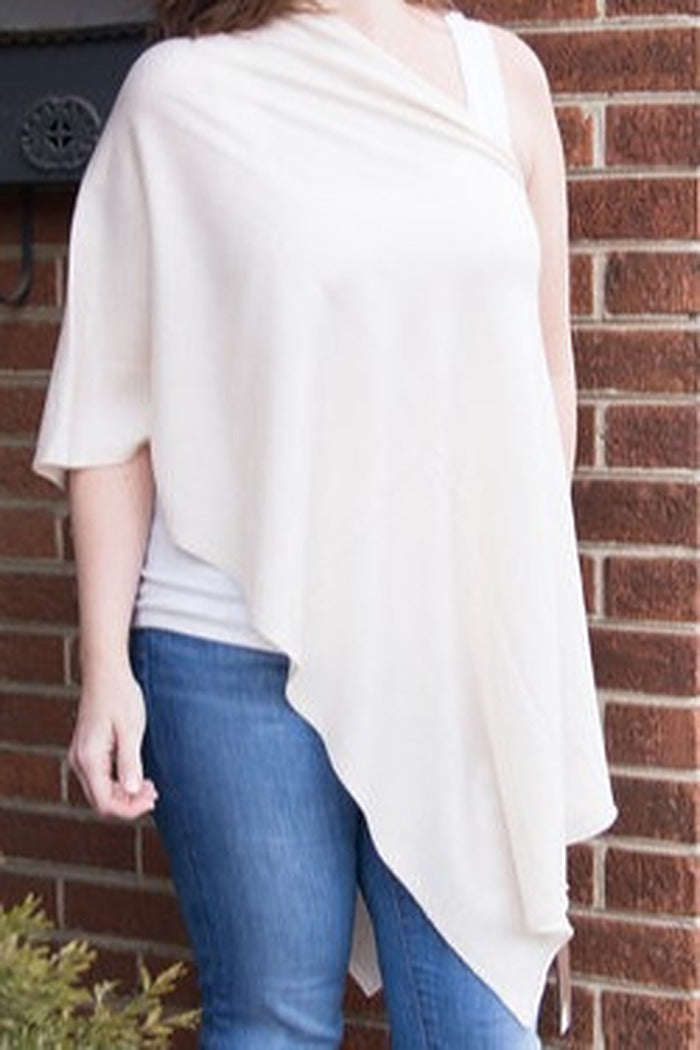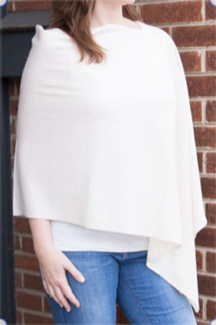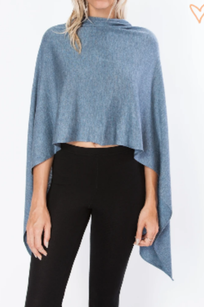 Not only is this poncho one of our personal favorites, it's also a best-seller with our customers! We love that it can be worn different ways: as a poncho, a nice sweater top, and as a scarf. Wear it as a scarf under your coat, then when you get to the event, turn it into a poncho to wear during dinner or a party. Our customers have told us that they also love it for flying since it folds up so easily to throw in a handbag or carry-on! It makes a great gift and is an awesome staple to have especially during in-between weather when you just want an extra little layer.
