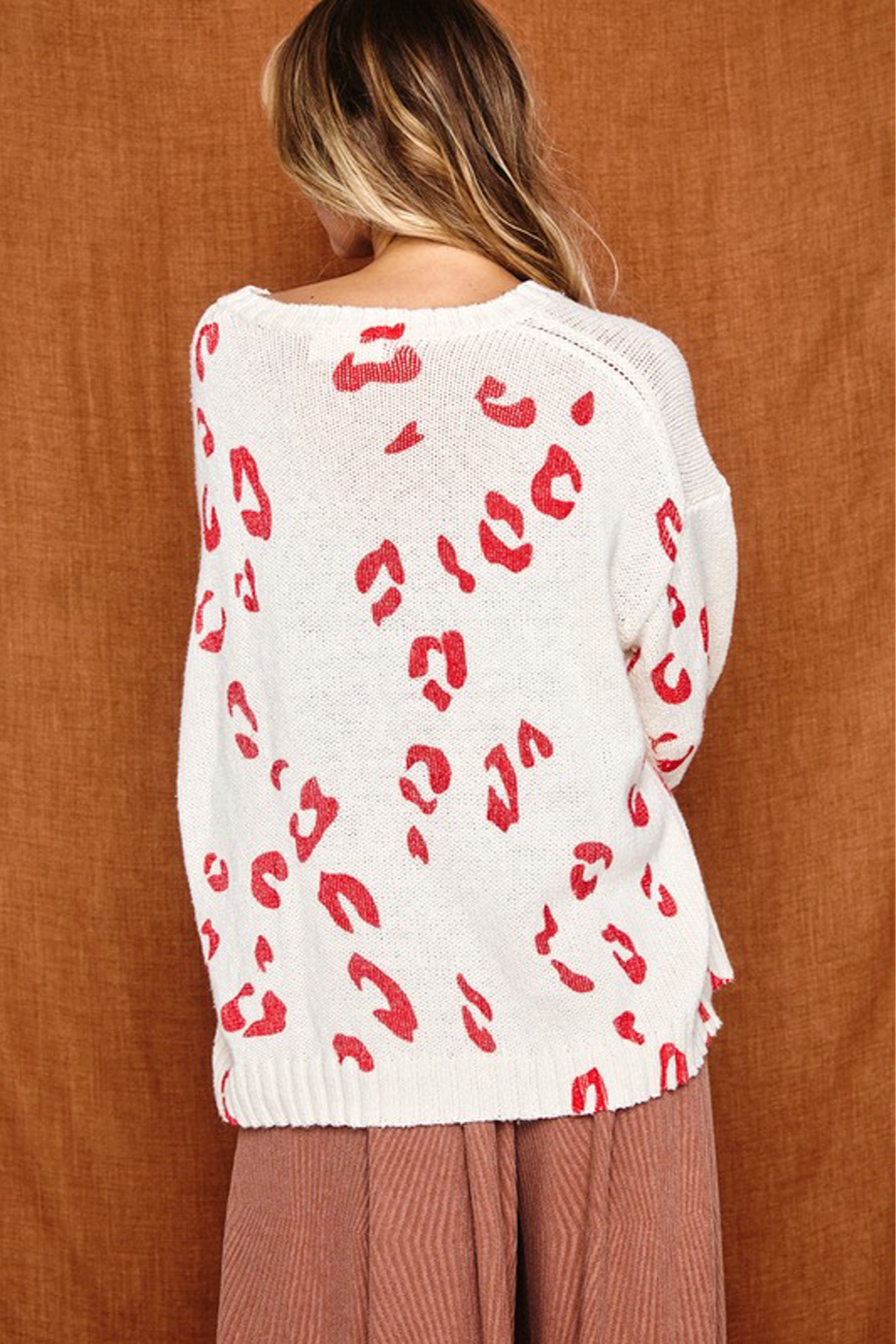 CREAM Red LONG SLEEVE KNIT SWEATER