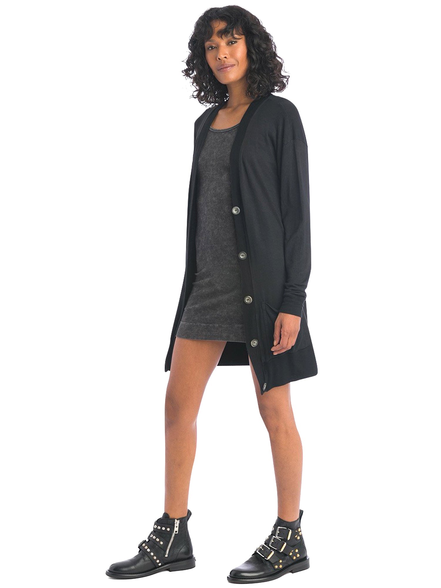 Embrace unrivaled comfort and effortless style with the Hard Tail Dream Drape Relaxed Long Cardigan. This luxe knit wonder blends a flowing silhouette with buttery-soft Modal fabric and statement buttons, making it your go-to piece for coffee dates, weekend strolls, and everything in between.