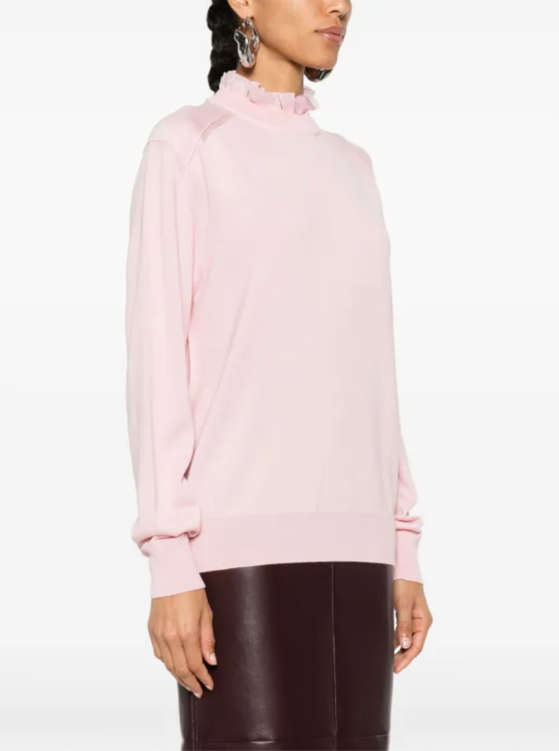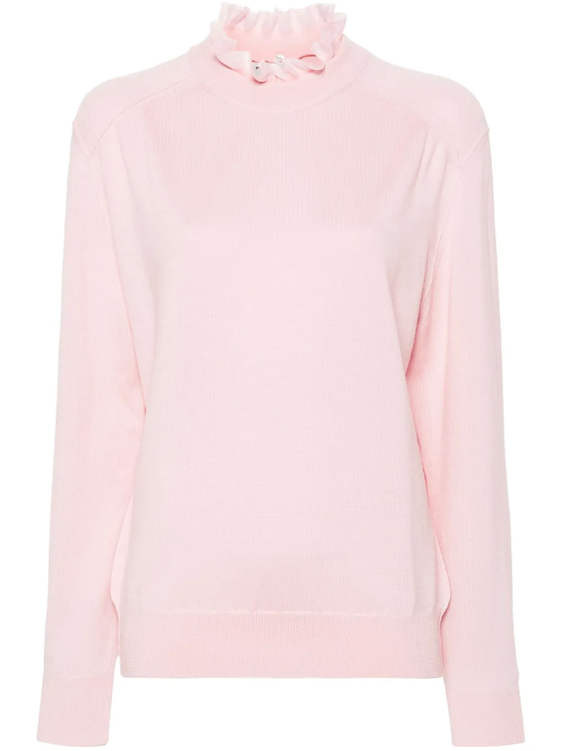 Philosophy di Lorenzo Serafini Pink Frilled-Neckline Silk Sweater