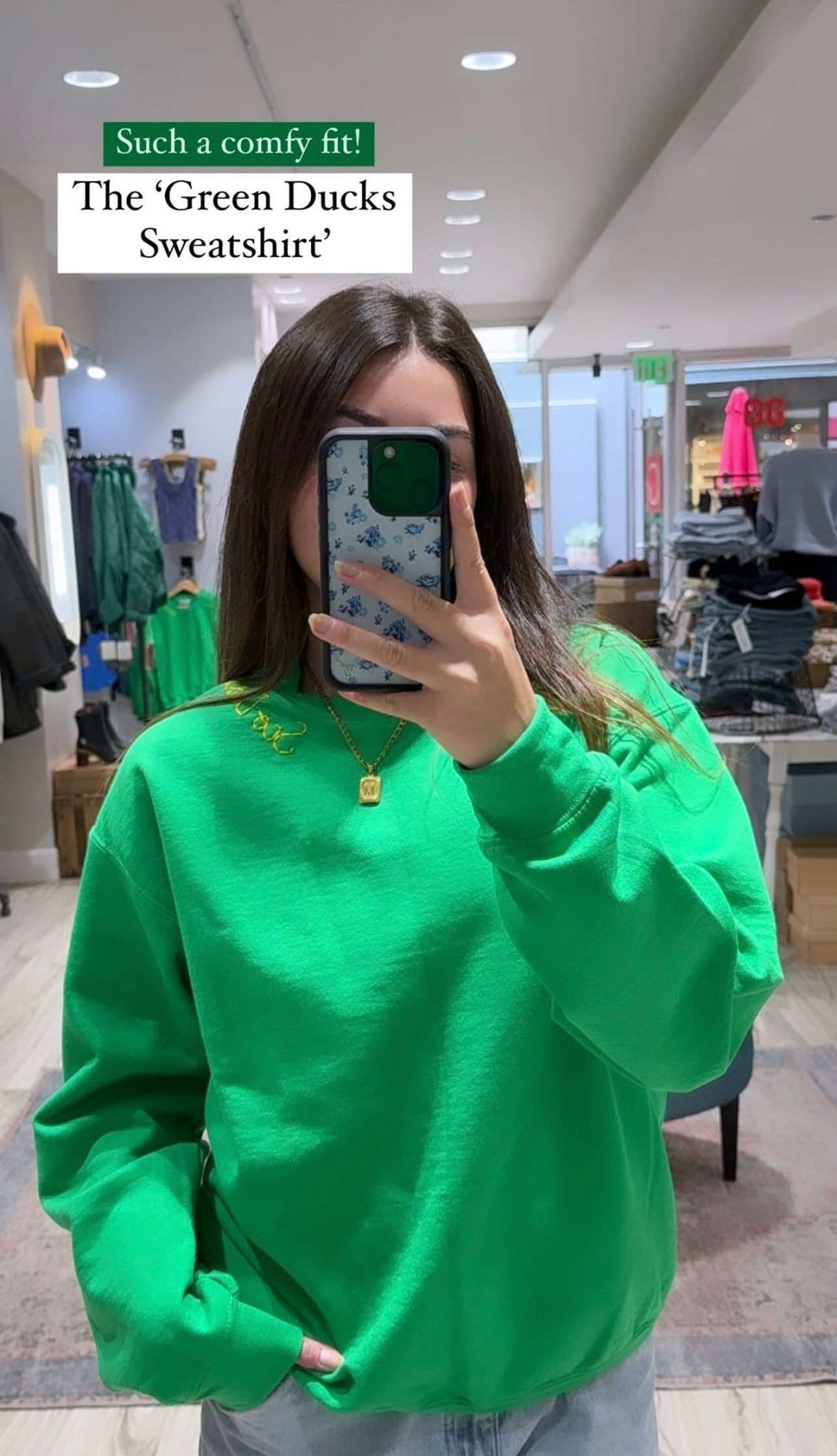 Soft Cozy sweatshirt with custom embroidery that says “SCO Ducks”