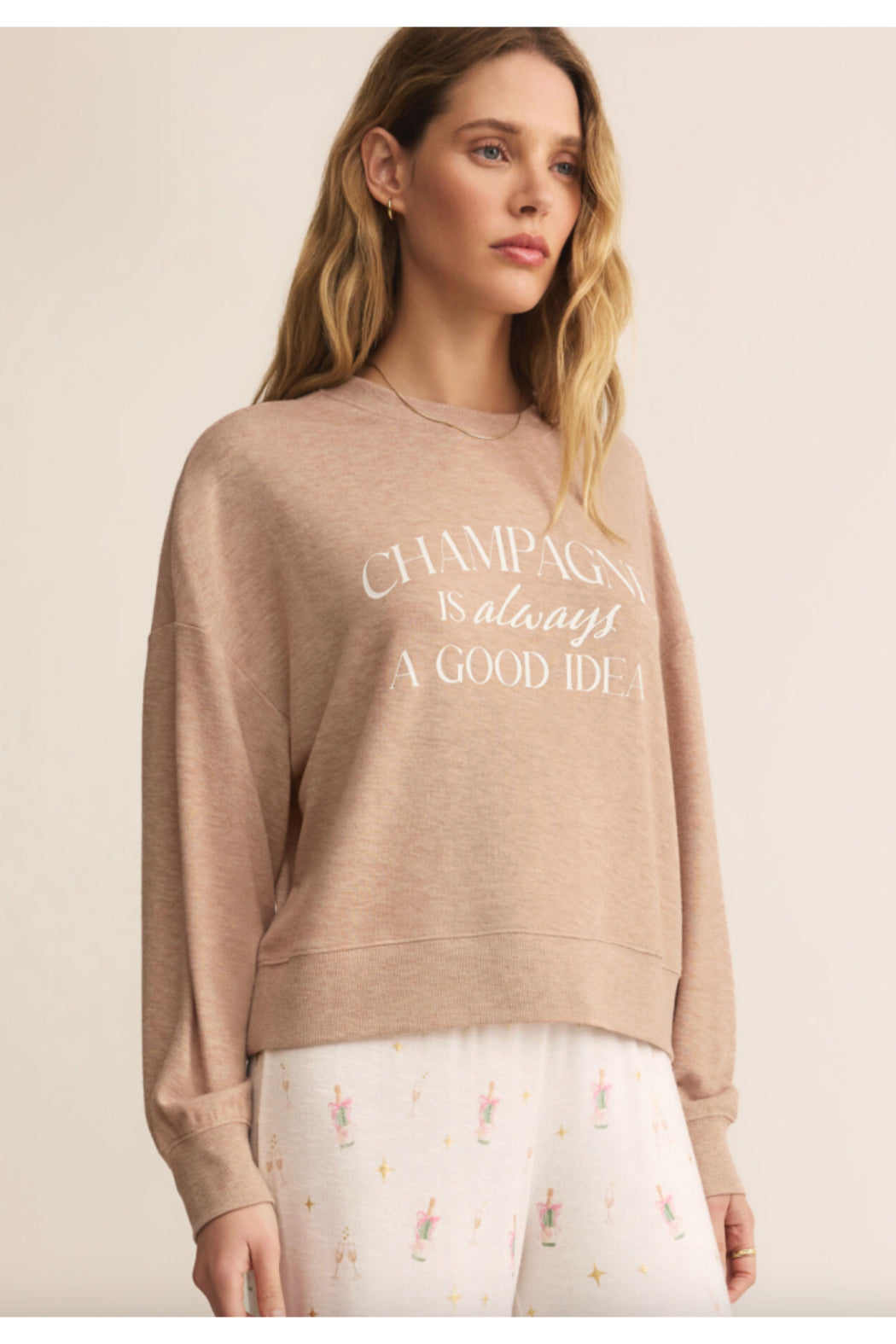 Crew neck Long sleeve Lightweight Heavy soft wash Relaxed fit Marled Knit: 62% Polyester 33% Rayon 5% Spandex Length from shoulder is 21"