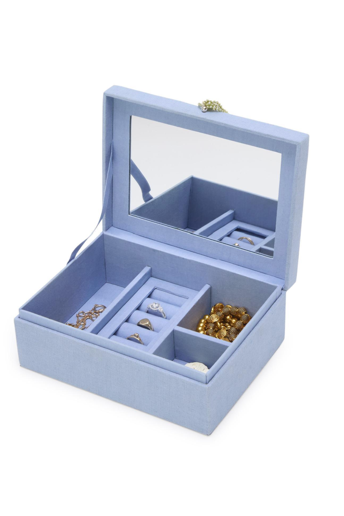 Indulge in charm with the exquisite Hydrangea Linen Fabric Jewelry Box. Handcrafted with care, this piece features a stunning Hydrangea beaded design that adds a touch of elegance to any space. The beaded tassel puller not only adds a vintage flair but also makes accessing your jewelry a delightful experience. The combination of MDF, cotton, glass beads, and metal ensures durability and style.
