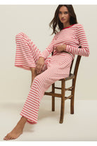 This two-piece set pairs Luxe Stripe Pant with the Night In Stripes Long Sleeve Top for a coordinated loungewear look. The z supply set is cut from a soft, striped knit with a relaxed wide-leg pant and a fitted long-sleeve crew top. It reads cozy and casual—perfect for relaxed days at home or low-key weekends.