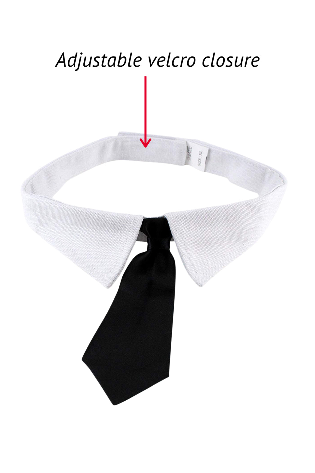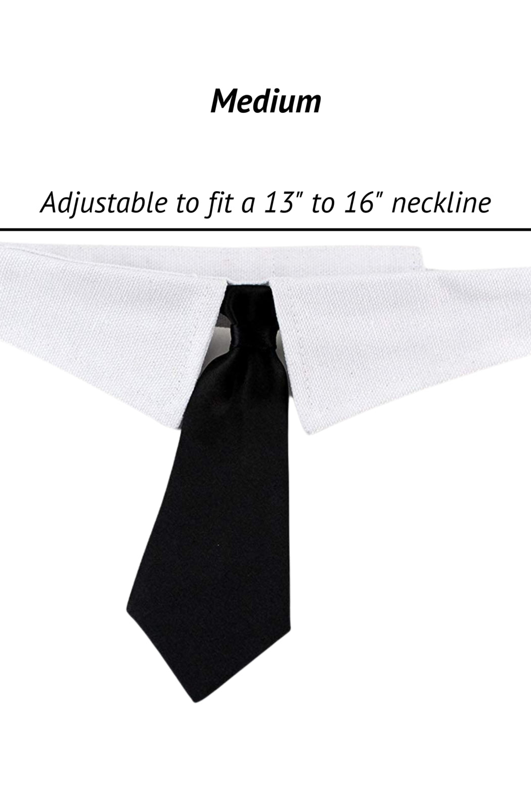 Dress up any occasion with this handsome black tie for dogs. Perfect for weddings, dances, and more. Adjustable velcro closure makes putting on and taking off the tie easy. Medium: Fits 13-16" Large: Fits 16-19"