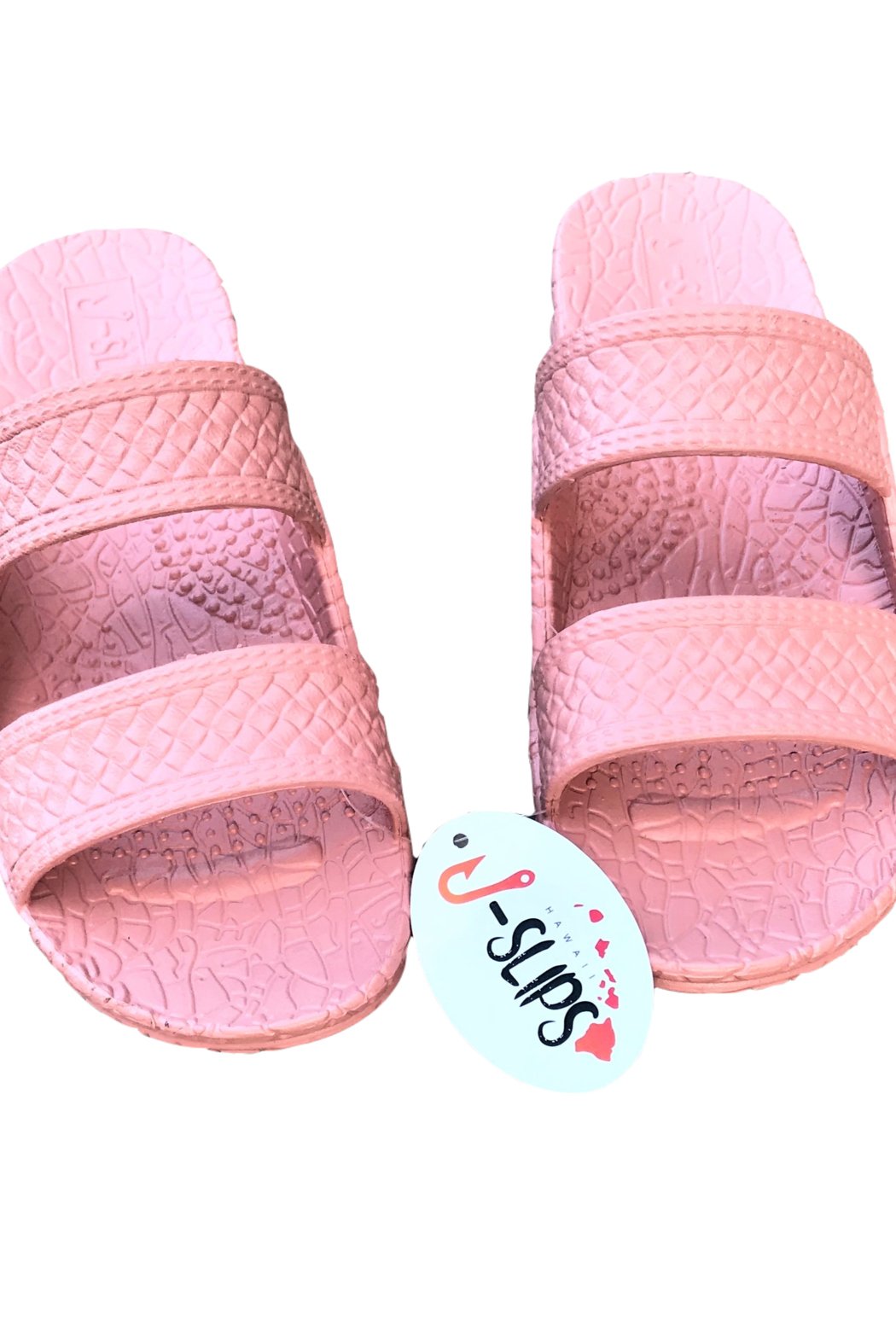 J-Slips now in cool pastel color: Pink Plumeria or Blue Hawaii. J-Slips are double strap, super comfy, lightweight, and flexible rubber sandals. J-Slips can be worn with or without socks and look great with shorts or jeans. Perfect for school, work, or the beach.