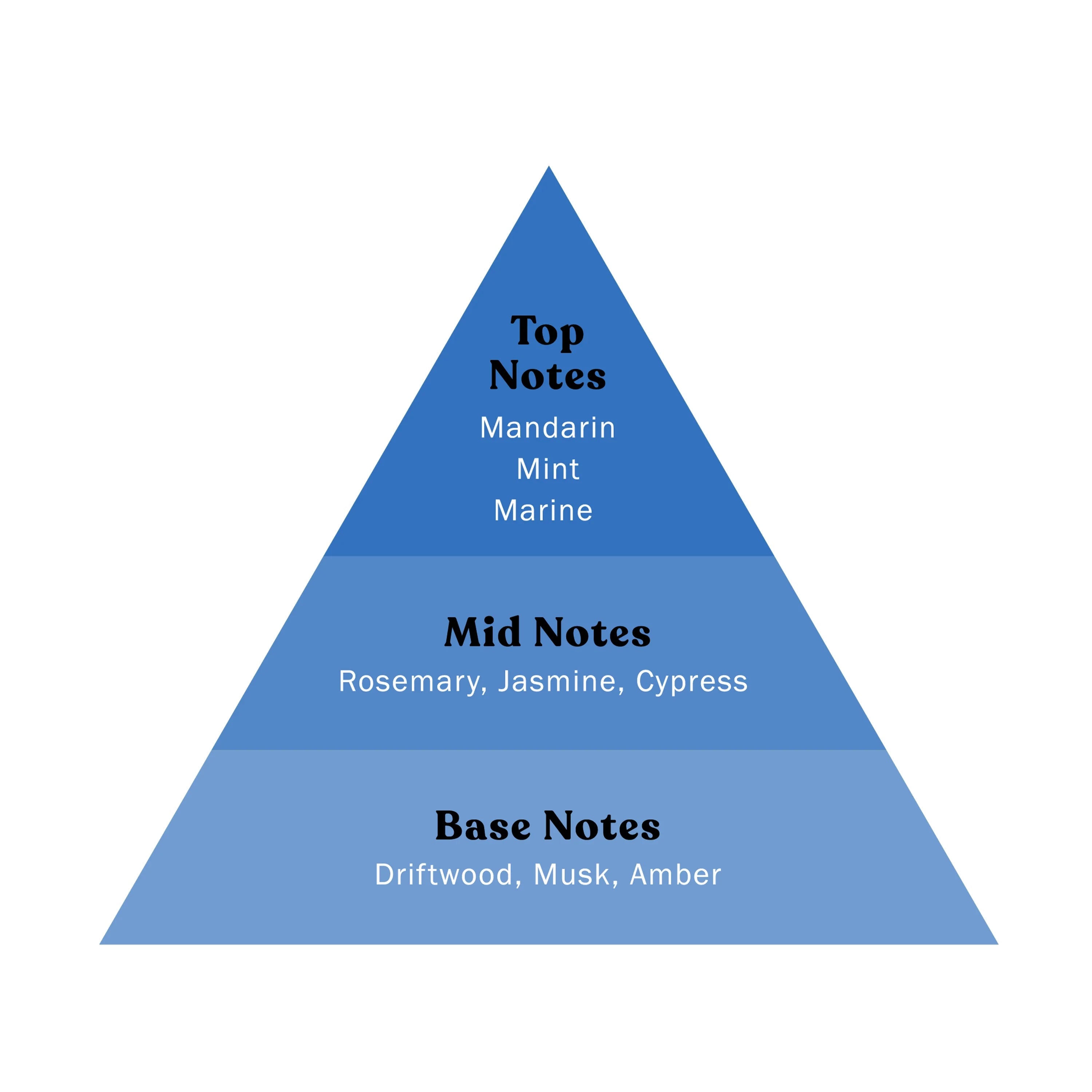 The zesty spark of mandarin starts things off by tantalizing the senses, intertwining a tale of addictive freshness. A revitalizing hint of Mint, reminiscent of the cooling sea spray, enlivens the composition with energy, while the watery and crisp marine notes transport one to the heart of the boundless ocean.