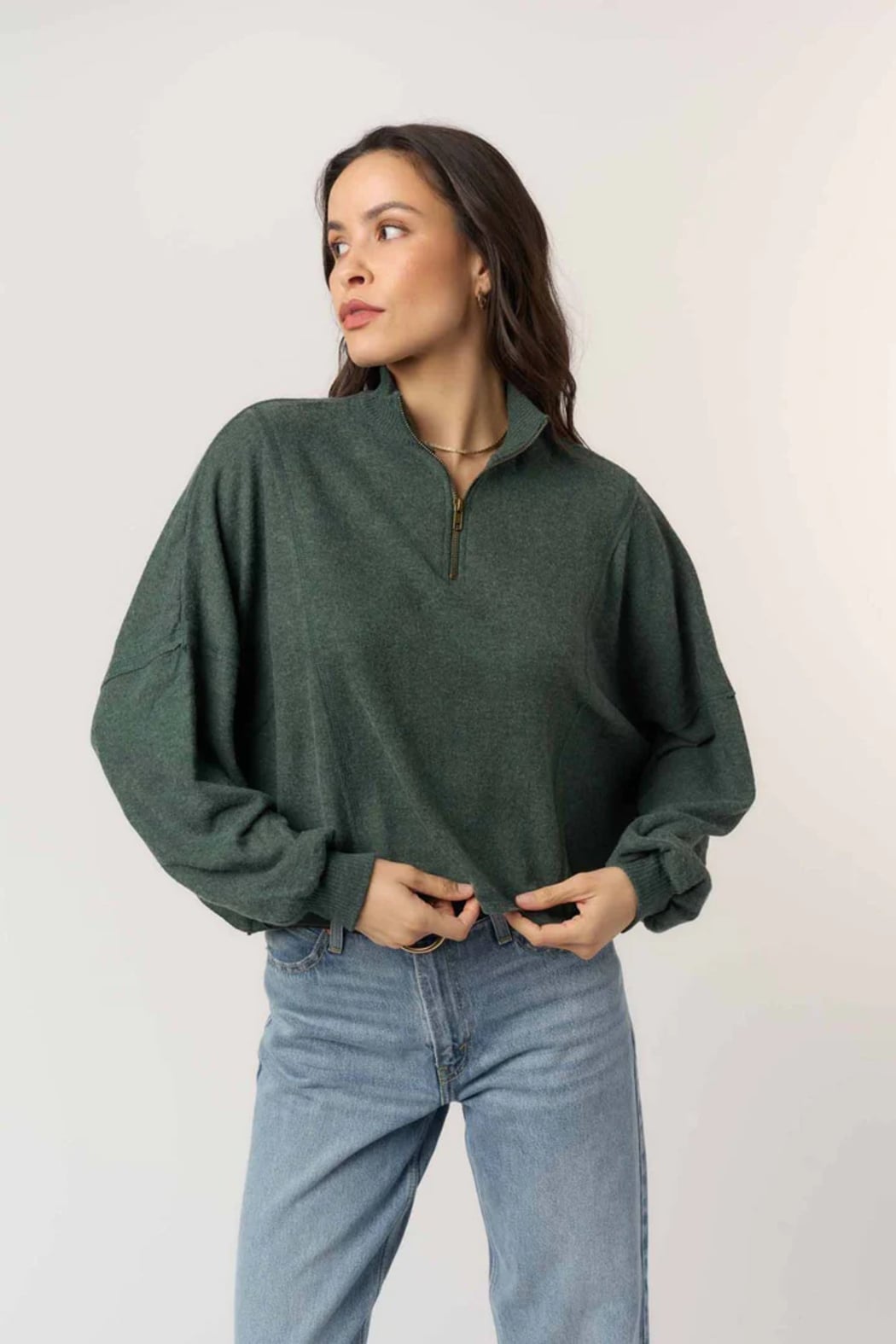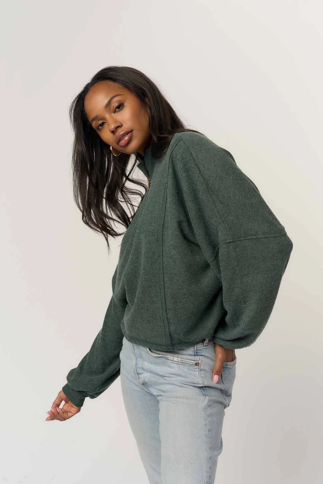 Made in the coziest heathered brushed fabric, the Ada does not disappoint. Detailed with our signature stitching and loose drop sleeves this half-zip was designed with comfort in mind. Easily pairs with your early morning workout or layered for an Autumn look.