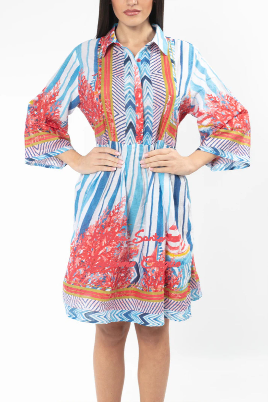 Sheer comforts, this dress has it all. a modest neckline, a flowy waist, and sleeves to keep the harsh sunbeams off-- all while staying light and airy!