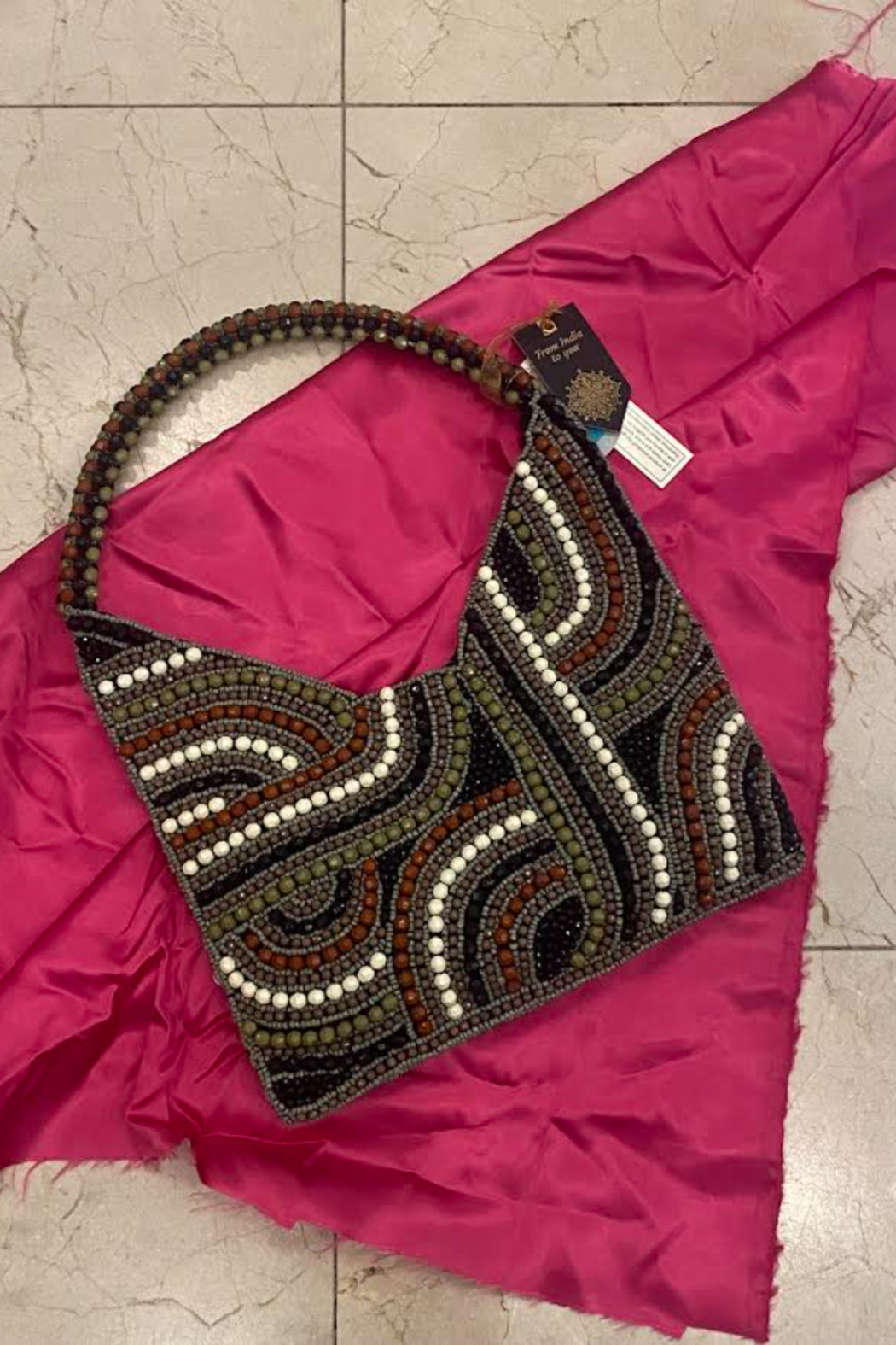 Beaded shoulder bag with iconic wave design Spot Clean only 11x11 inch with 8 inch tall handle