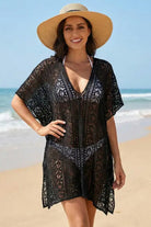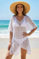 This crochet V-neck beach cover-up tunic features a breathable openwork design with a relaxed silhouette for effortless warm-weather styling. Ideal for layering over swimwear, it offers lightweight comfort and easy movement. Perfect for beach days, poolside lounging, tropical vacations, and resort-ready outfits with laid-back appeal.