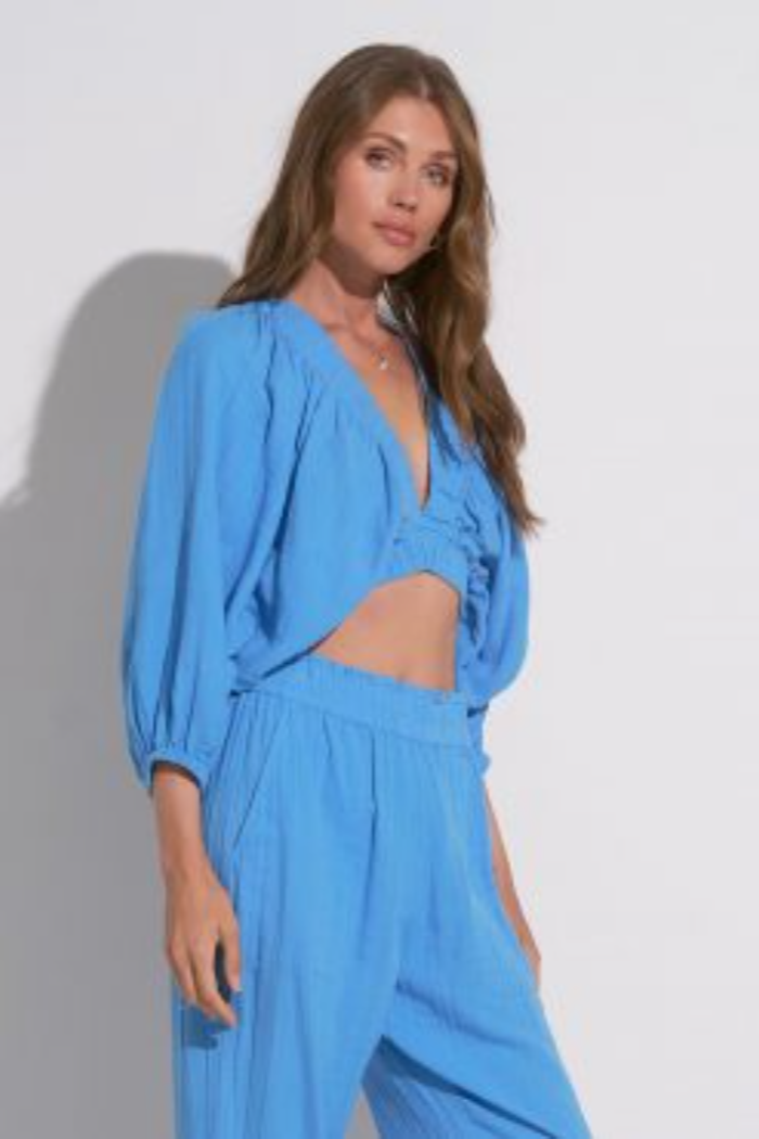 Our favorite resort bubble top, featuring a deep V-neckline.