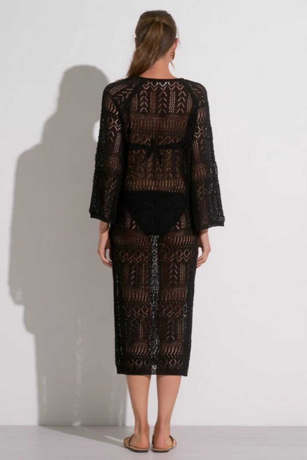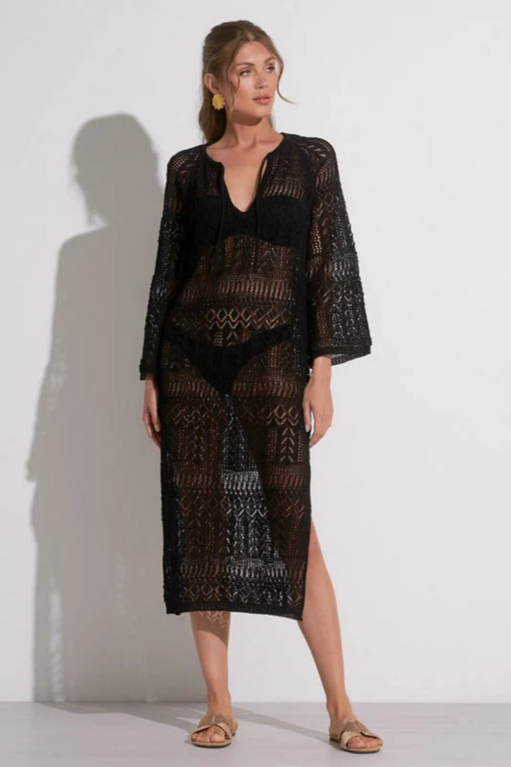 The Maldives Kaftan is the ultimate breezy beach cover-up. Featuring a delicate crochet design, this long-sleeve V-neck kaftan drapes beautifully with a relaxed fit and side slits for effortless movement. Perfect for layering over swimwear, it’s a must-have for your next getaway.