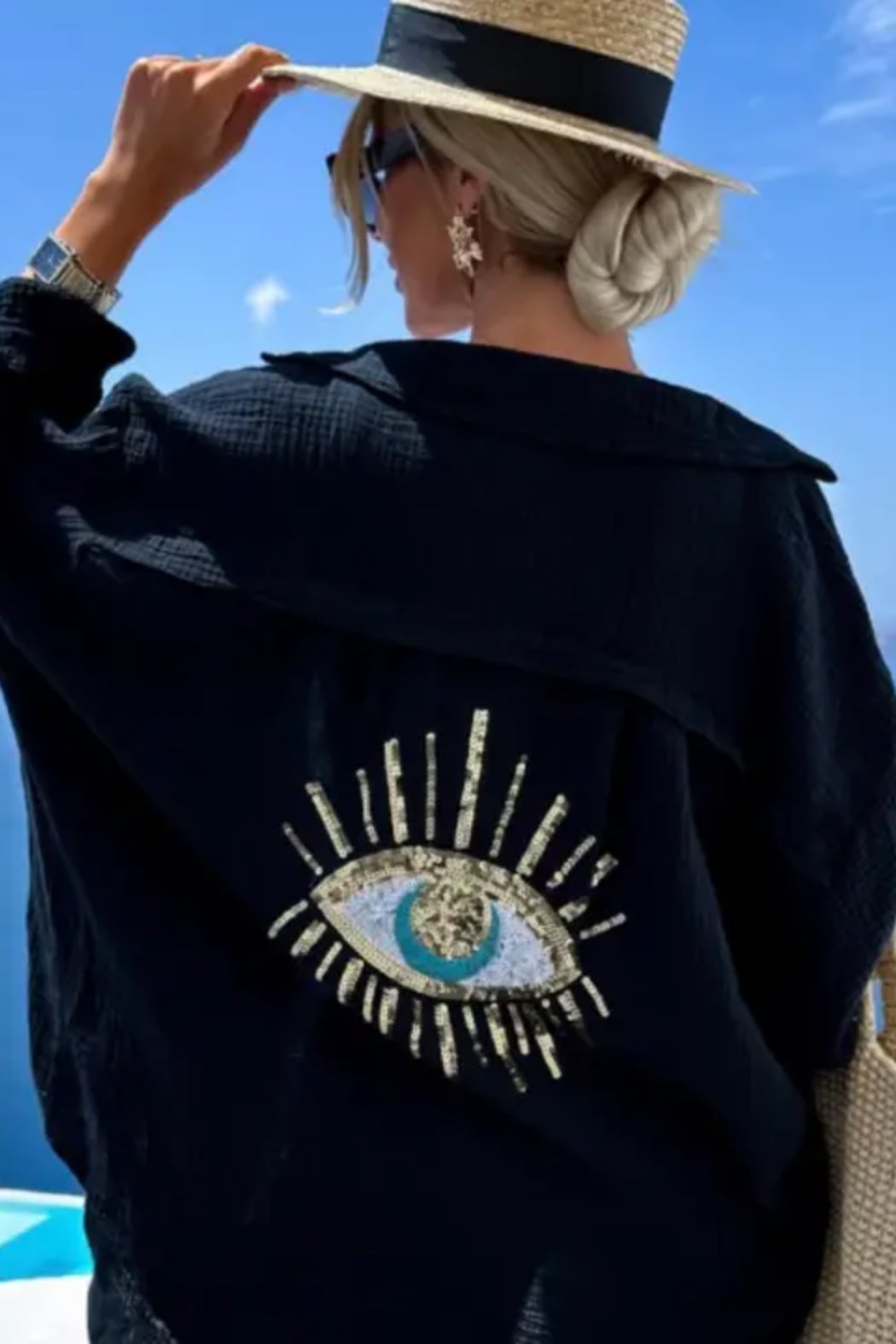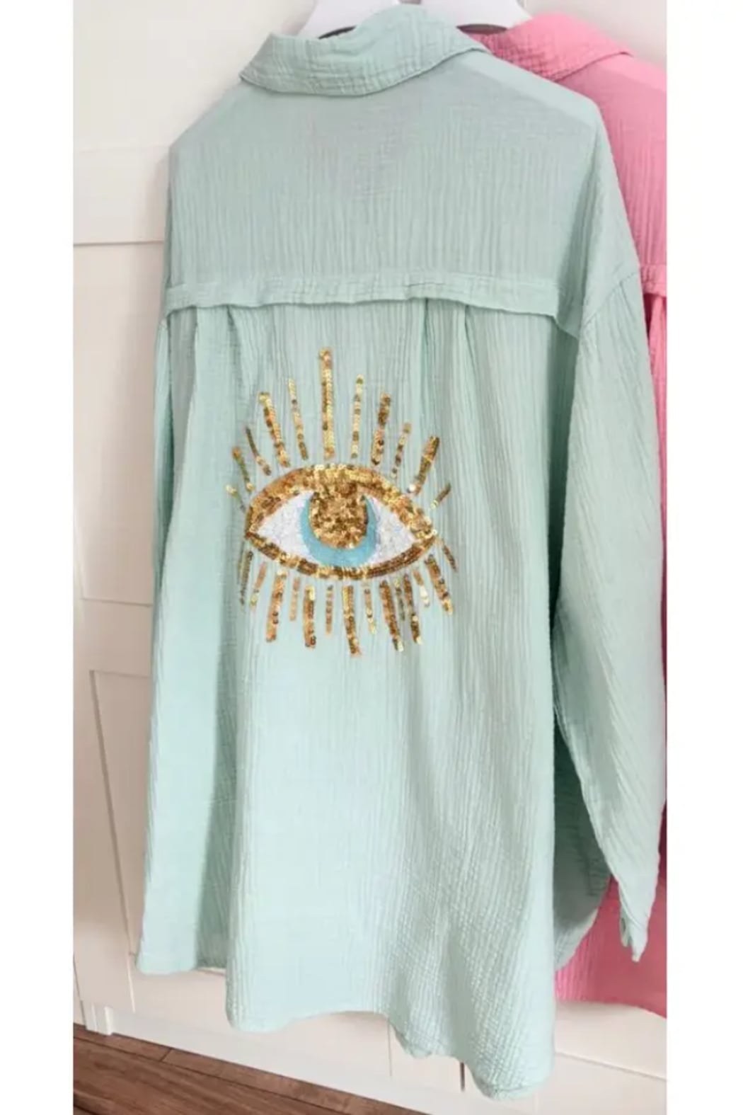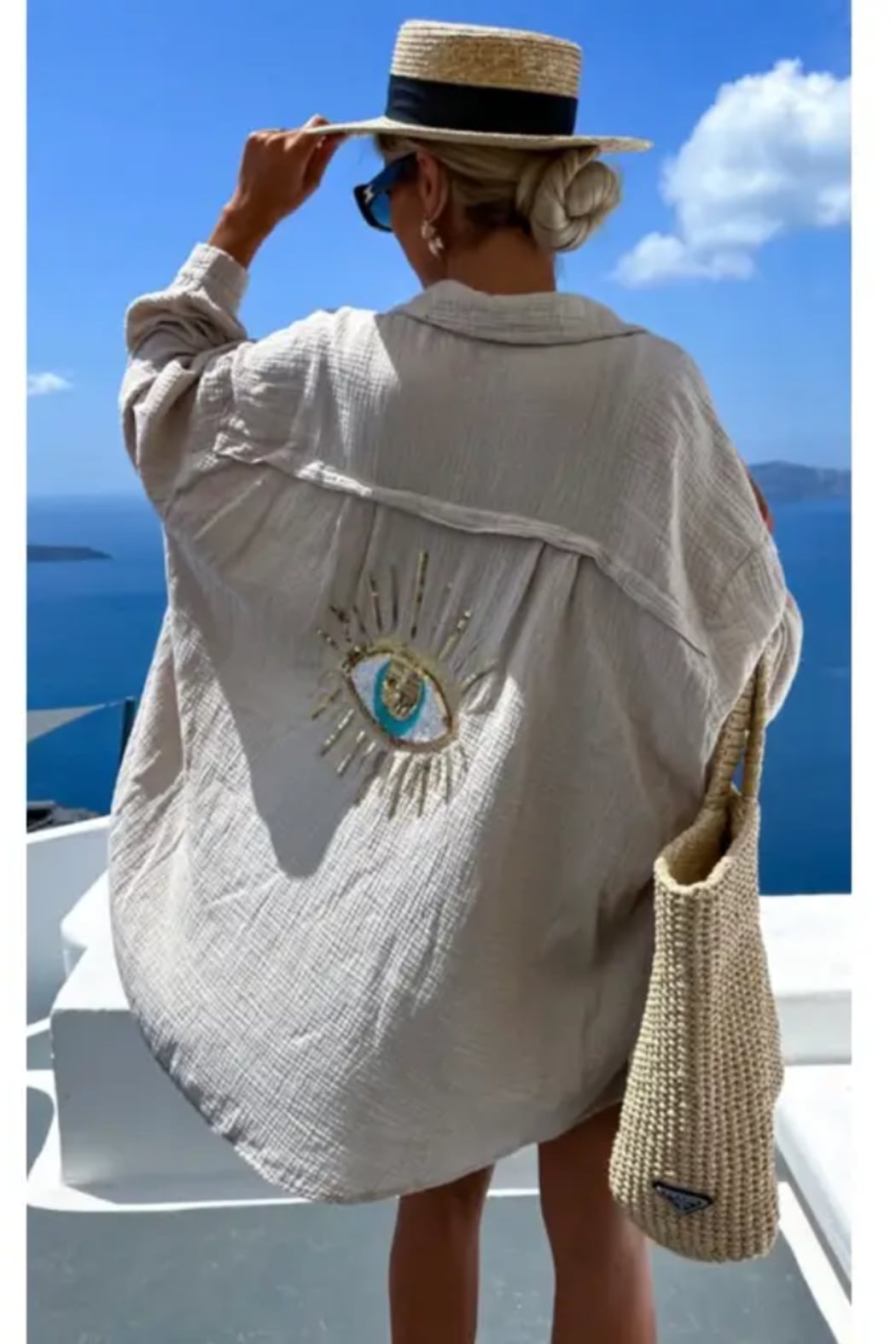 Oversized Evil Eye Gauze Cotton Button Shirt