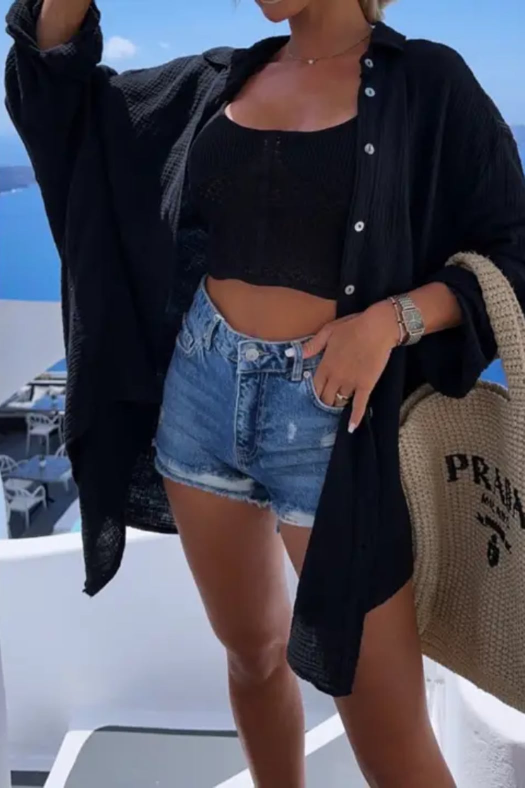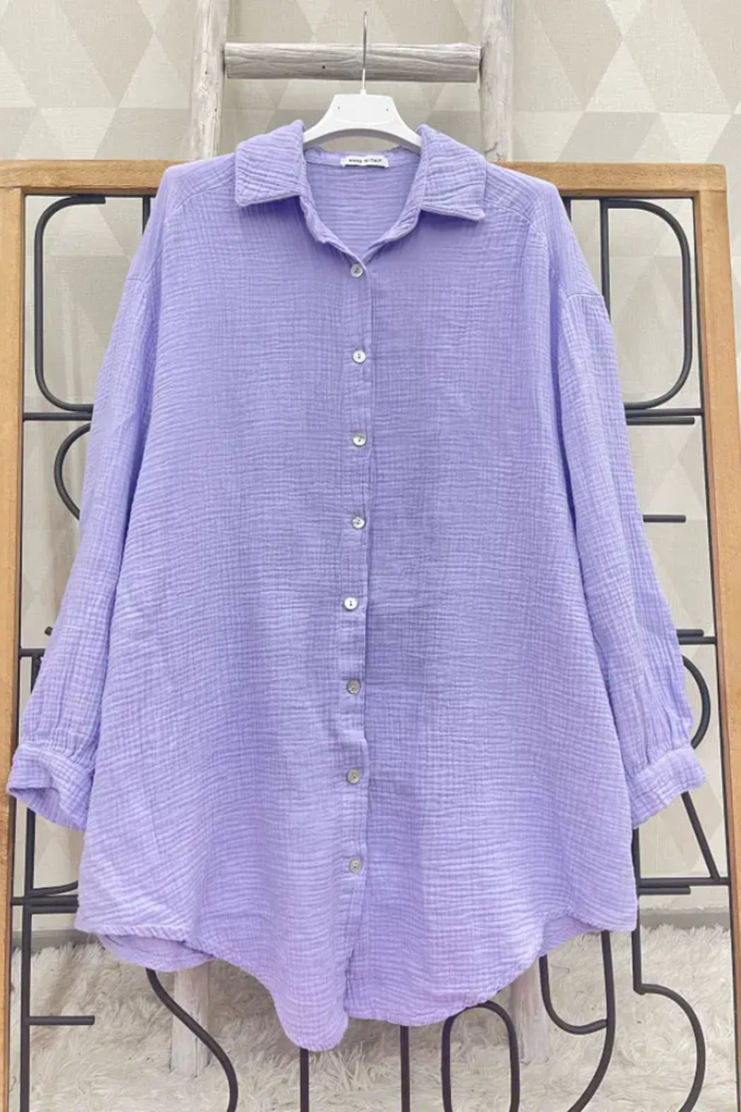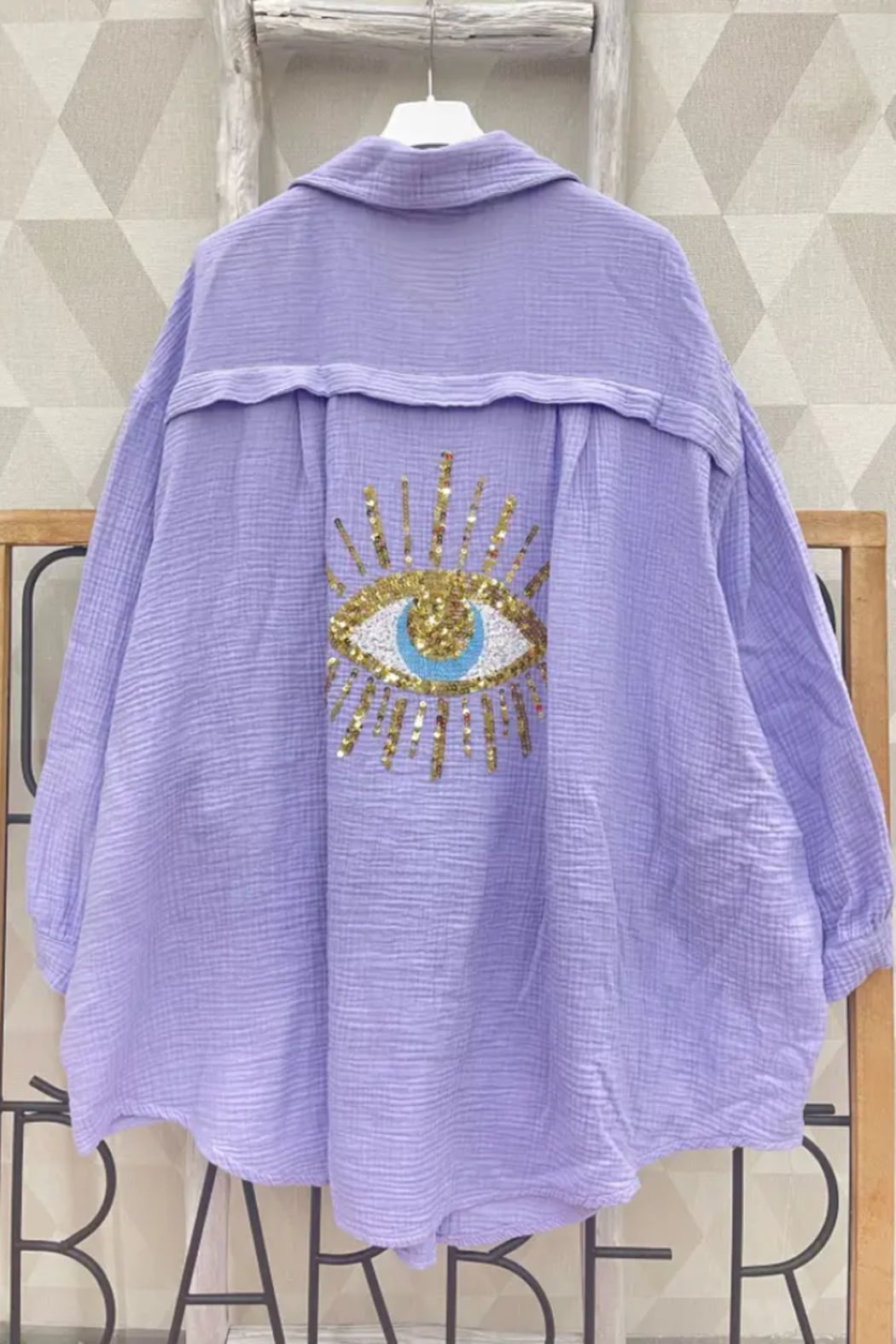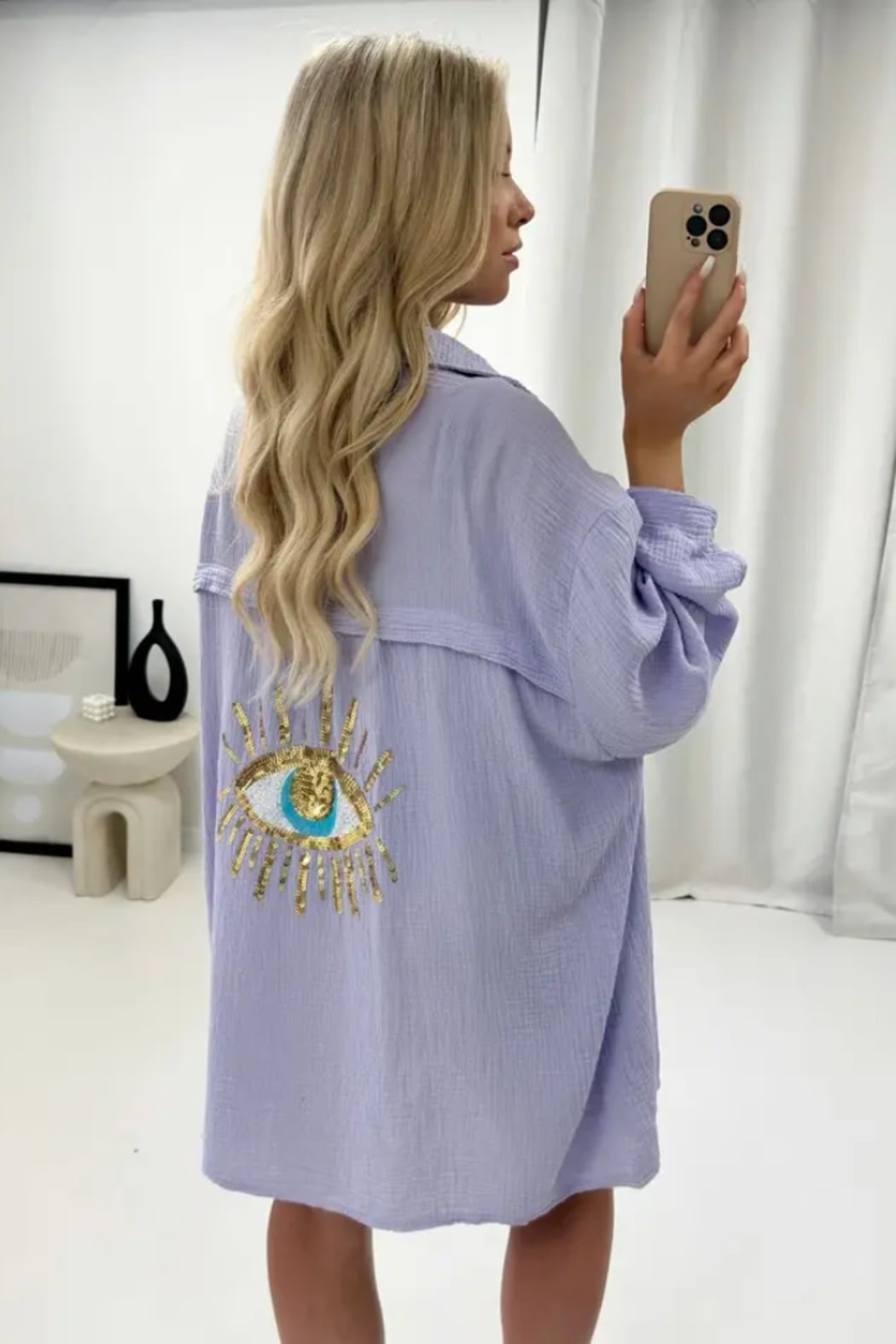 Oversized Evil Eye Gauze Cotton Button Shirt