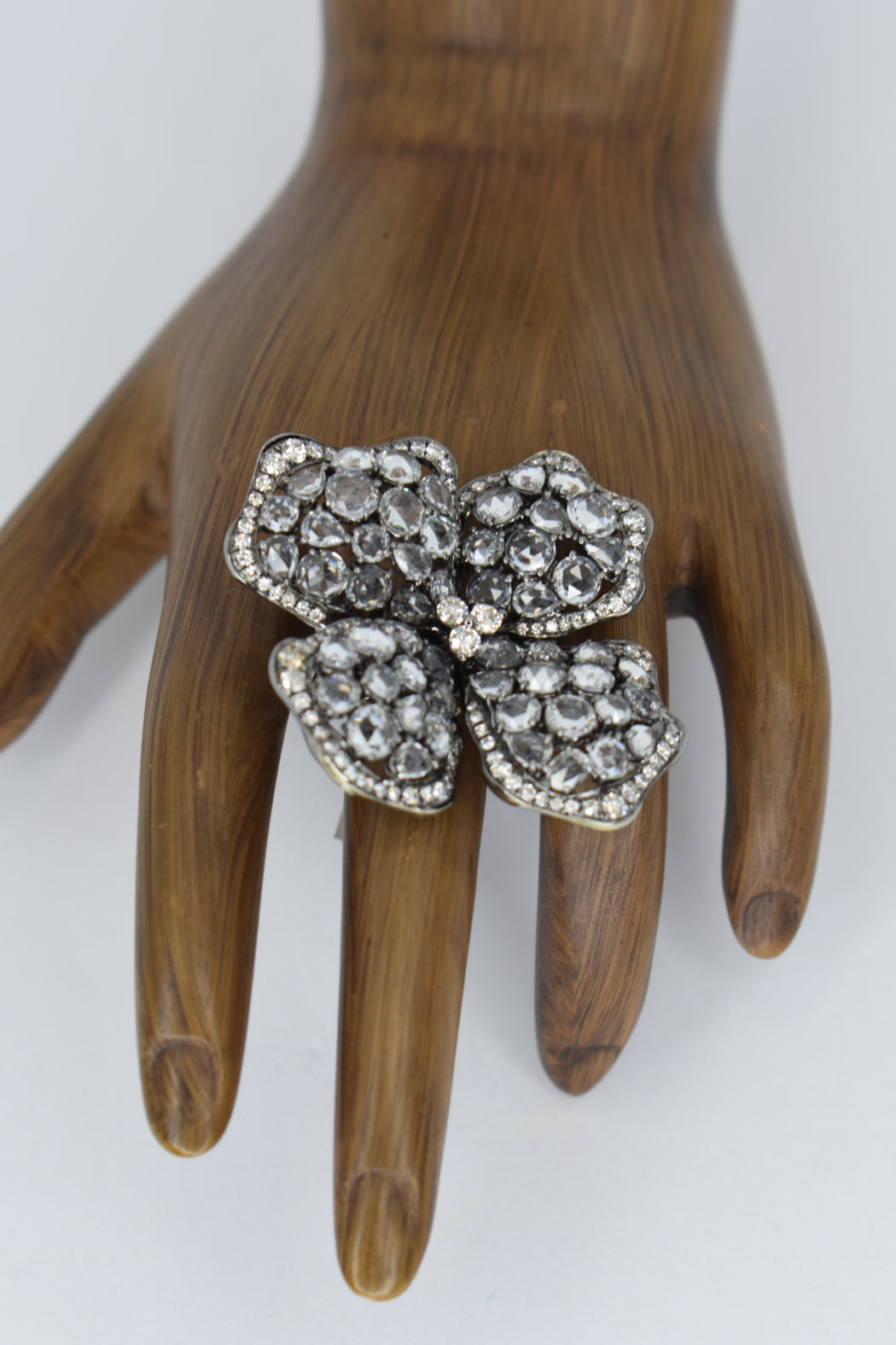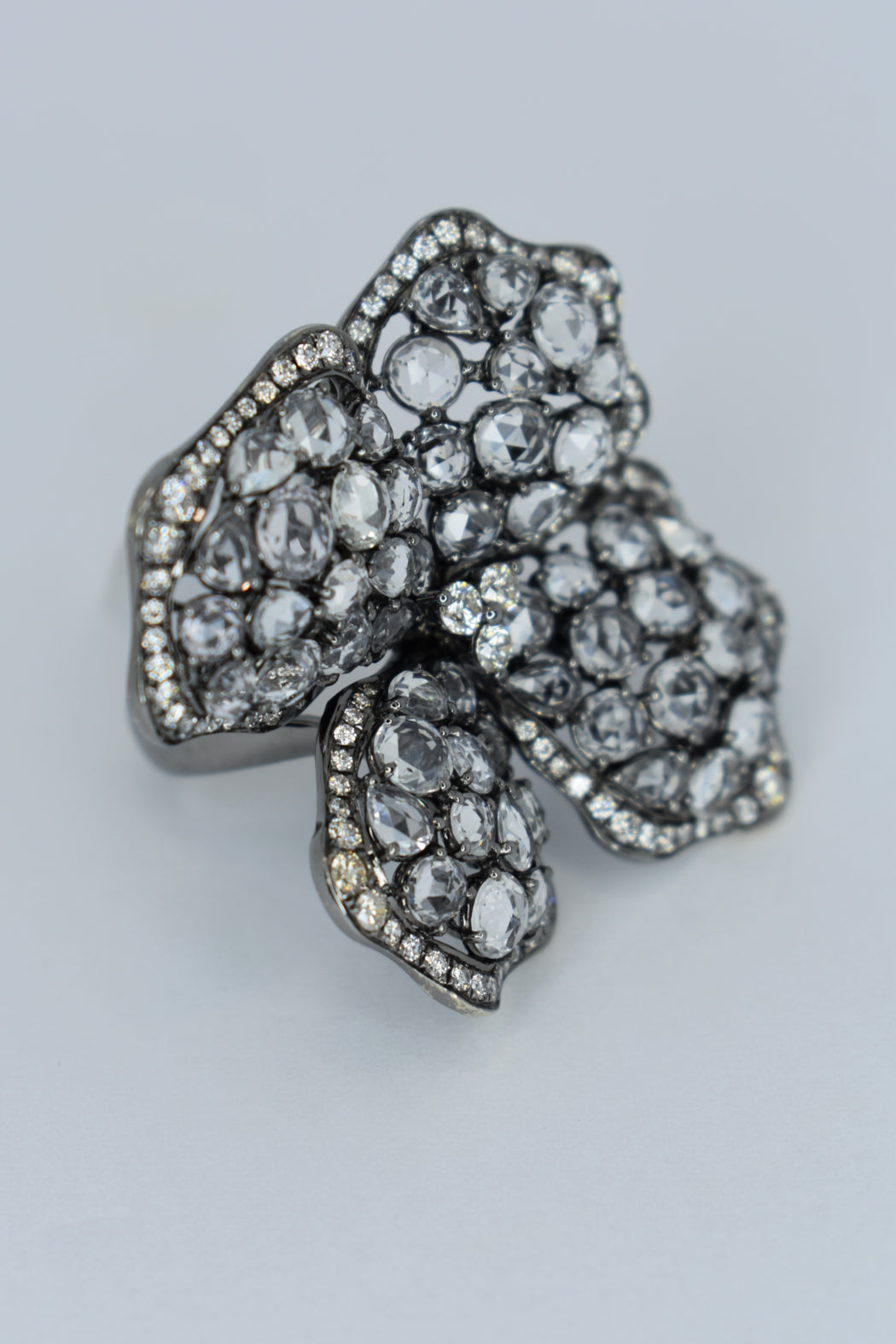 14kt Black Rhodium Diamond (1.48cttw) & White Sapphire (11.96cttw) Flower Ring.