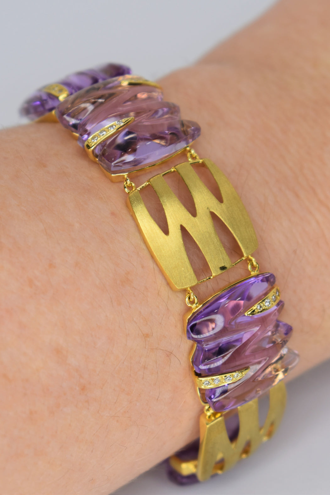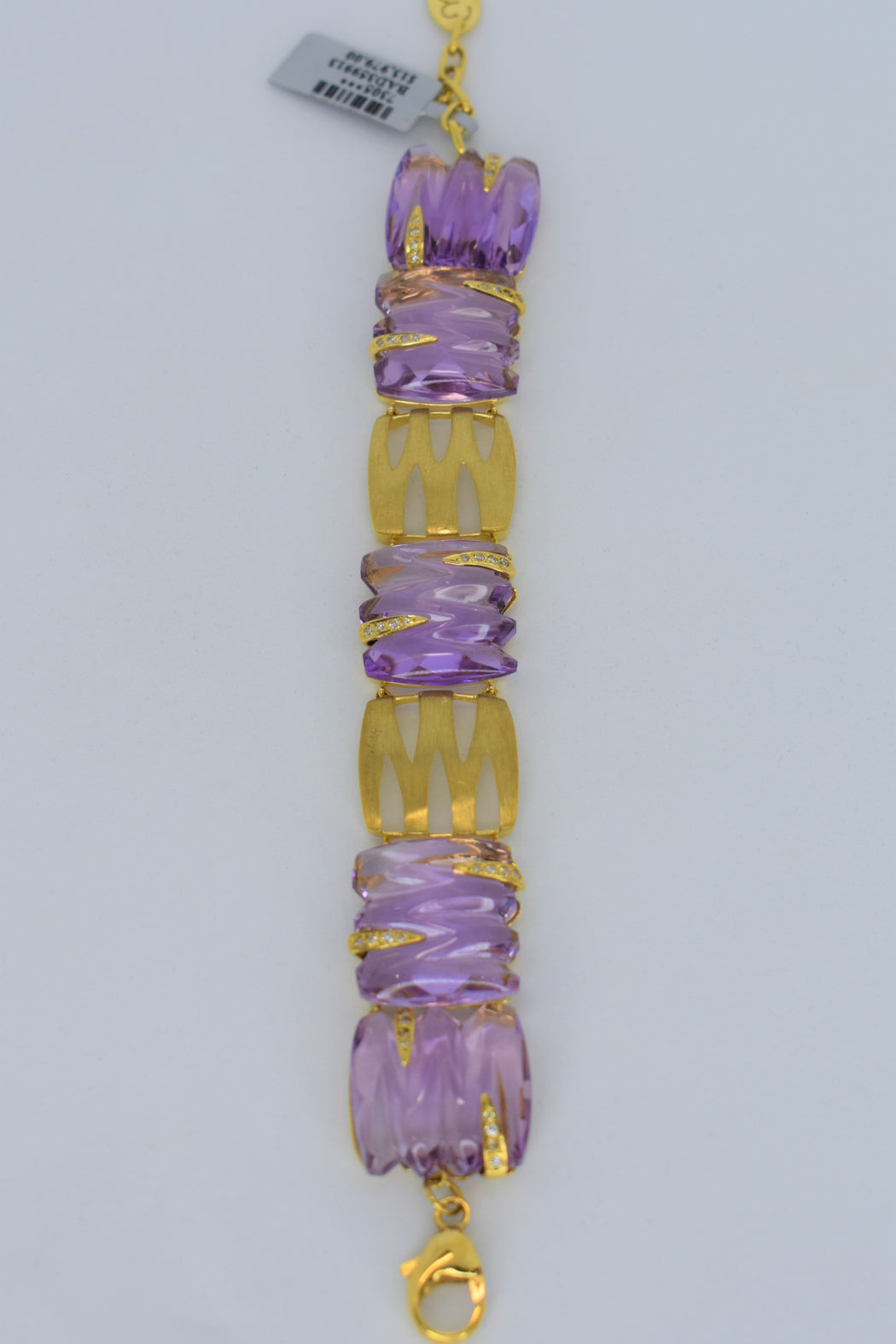18kt Brushed Yellow Gold Amethyst (111.75cttw) & Diamond (.38cttw) Bracelet by Brazil Boutique.